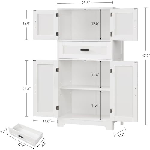 Number of Shelves: 2 MPN: Does Not Apply Manufacturer: Does Not Apply Date First Available: December 12, 2024 gtin13: Does Not Apply Recommended Uses For Product: Crockery, Medicine, Jewellery, Entertainment Media, Home Bar, Key EAN: Does Not Apply Base Type: Legs Lock Type: No Lock Mounting Type: cabinet Item Weight: 41.66 Pounds Country of Origin: China Item Length: 1 Item model number: storage cabinet Number of Levels: 3 Shape: Rectangular Number of Racks: 2 Assembly Required: Yes Number of Compartments: 4 Handle Material: Wood Type: Does Not Apply Included Components: 1*cabinet, 1*handware bag, 1*instruction Door Style: Flat Panel Installation Type: cabinet Top Material Type: Engineered Wood Finish Type: White Size: 47.2''H Special Feature: Moisture Resistant, Anti-Tipping, Dustproof, Fade Resistant, Adju Color: White Is Customizable: No Weight Limit: 150 Pounds UPC: Does Not Apply Room Type: Laundry Room, Bathroom, Living Room, Home Office, Dining Room Frame Material: Engineered Wood Back Material Type: Engineered Wood Item Height: 1 Brand: Does Not Apply Item Width: 1 Product Dimensions: 11.8"D x 23.6"W x 47.2"H