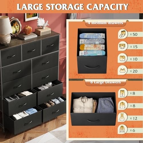 10-Drawer Fabric Dresser Storage Unit in Greige for Bedroom or Closet