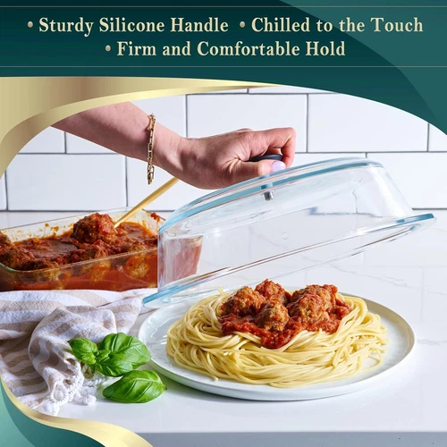Tall Glass Microwave Splatter Cover for Food - Cookware & Bakeware Serving Dish Cover, Plate Splatter Guard Lid with Easy Grip Silicone Handle Knob - 100% Food Grade BPA Free & Dishwasher Safe - 10in. LuxeFusion Product Description Features ENSURE A CLEAN MICROWAVE: Use this pure glass splatter guard lid to cover your food plate, bowl, or meal prep container in the microwave and avoid any dirt or mess. KEEP YOUR FOOD SAFE: This dish cover is a safer option than plastic or rubber microwave covers, as it won't melt or scratch, is plastic free and non toxic, and doesn't release harmful chemicals like BPA or Lead onto your food. Proudly designed in the USA and built in a top-tier facility that specializes in tough, high-performance glass for extreme conditions. DUAL VENTING HOLE FOR EVEN HEATING: The lid's venting hole system allows steam to escape in a safe manner so that you don't burn yourself when removing the lid, but regulates the hot air to heat your food uniformly, and prevents it from drying out, keeping it fresh and moist. BENEFITS OF GLASS: The dish cover's glass material allows for easy viewing of your plate's contents as it reheats. It's sturdy enough to endure multiple uses and can be washed in the dishwasher. EASY TO HANDLE: The lid's firm grip handle makes it convenient to cover and uncover your food plate, as well as to handle the lid in and out of the microwave or store it in your kitchen drawer or cabinet. THE PERFECT KITCHEN ESSENTIAL: Our microwave plate cover splatter guard is perfect for cooking bacon, steaming vegetables, heating pasta, warming leftovers, basting and much more! Size; 10" x 11.75". Weight 3lb. Product Details Material: Glass, Silicone, Plastic, Rubber Color: krx32 Brand: Le'raze Style: Classic Product Dimensions: 11.75"L x 10"W Item Weight: 3 Pounds Shape: Round Number of Pieces: 1 Is Dishwasher Safe: Yes Closure Type: Lid Is Microwaveable: Yes Item Weight: 3 pounds Item model number: gl932 🚚 Free Shipping All orders ship free and fast to your doorstep. 🔁 Easy Returns Satisfaction guaranteed. 30-day returns, no questions asked. 💬 24/7 Support Contact us anytime; we’re here to help, day or night. Brought to you by LuxeFusion – Quality you can trust.