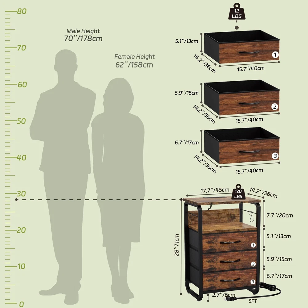 Tall Nightstand Set of 2 with Charging Station, Bed Side Tables Bedroom Set of 2, LED Night Stand Set 2, Bedside Table with Drawers, Night End Table with Storage for Bedroom, Dorm Rustic Brown [Night Stand with Charger Station]: rustic brown bedroom nightstand built-in charger including 1 USB C port, 2 USB ports, and 2 AC outlets, daily charging need would be satisfied. Charging nightstand adapts to lamps, phones, tablets, watches, and more [Amazing LED Nightstand]: The tall side table light with 20 RGB colors and 5 dynamic modes would be a surprising bonus for your home setting. Freely adjust the brightness and color temperature using the phone APP or the remote. Create your best light show with this mesmerizing LED night stand [Sturdy Metal Honey-comb Frame]: With its innovative sturdy metal honey-comb structure, this rustic brown bed side table offers high load-bearing of up to 120 LBS and resistance to deformation, and also as a stylish statement piece decor. The night table's adjustable feet ensure stability on any surface [Taller & Larger]: Tall bedside table dimension: 14.2"D x 17.7"W x 28"H, offers 3 large fabric drawers, providing ample storage space for personal items such as jewelry, clothes or gifts, bearing up to 12 LBS. Additionally, the end table is equipped with 2 practical metal hooks for hanging items, ensuring a neat and organized bedside space [Easy Assembly & Service Commitment]: Each bedroom night stand set of 2 comes with an easy-to-follow instruction manual and all necessary tools. Assembly is a breeze, regardless of skill level. Feel free to contact us if you need extra support, we will reach you within 24 hours. Start enjoying the benefits right away Nightstand set of 2 with Charging ports is a quick and simple way to update your home!Our nightstand with charging station has four colors and style to choose, Placed on your bedside, bedroom, dorm room, put on a little warm lamp, read a book before sleep, what a wonderful moment. Use our bedside table, get a blissful sleep. Multifunctional end table: Charging Station: 2 power AC outlets, 2 USB, and 1 USB C ports are enough to charge your phone, lamps, and smart speaker. Long Power Supply Cord: 5 ft long power supply cord support allows you to place your end table in most places. Amazing LED Nightstand: The bed side table LED light with 20 RGB colors and 5 dynamic modes would be a surprising bonus for your home setting. Tight and Stable Structure: The reinforced metal frame and high-quality MDF board offer a large weight capacity. The top shelf can hold up to 120 lbs. Large Drawer with Storage Space: This nightstand has 3 large fabric drawers and 2 iron hooks, the large storage space can meet all your demand. All the necessary accessories are together with our package. This night stand is great for bedroom, living room, entryway, etc SHIPPING Domestic Buyers - We have confidence in our products, but if you are not fully satisfied please contact us within 30 days of purchase and you will get full refund. - We ship within 3 business days of payment, usually sooner - We offer FREE shipping on all orders! - We only ship to the lower 48 states, no APO/FPO addresses or PO Boxes allowed International buyers – please note: Import duties, taxes, and charges aren't included in the item price or postage cost. These charges are the buyer's responsibility. - Please check with your country's customs office to determine what these additional costs will be prior to bidding or buying. * Order Cancellation Policy ** You can return a product for up to 30 days from the date you purchased it. 1. The seller reserves the right to cancel the special case only due to eBay cancellation fee. 2. The decision of seller is the final. 3. The seller will respond to the cancellation request within 2 business days. Please wait for the result of cancellation. 4. In case the cancellation is not completed by some reasons, the buyer can follow the options below to get the refund. 4.1 The buyer can reject the item when it arrives. 4.2 The buyer can send the item back to the seller within 30 days If the buyer receives item (USA Shipment ONLY). The seller will provide the FREE return label to the buyer when the buyer opens " Return Item" case on eBay by using the reason as "Change my mind" ONLY. 5. When buyer has placed the order. The order will be processed and completed by automatic warehouse system within 5 minutes. In case that buyer sends the cancellation request after 5 minutes of placing the order, the request will be rejected. **Sending direct message to cancel the order is not allowed for every case.* Return Policy For the return case - If buyer would like to return the items for refund or replacement, please CONTACT SELLER to receive the free return label from seller. The refund or replacement will be processed with the tracking number of return label which is provided by seller only. The other ways of return which are not approved by seller will not be processed for the refund or replacement.