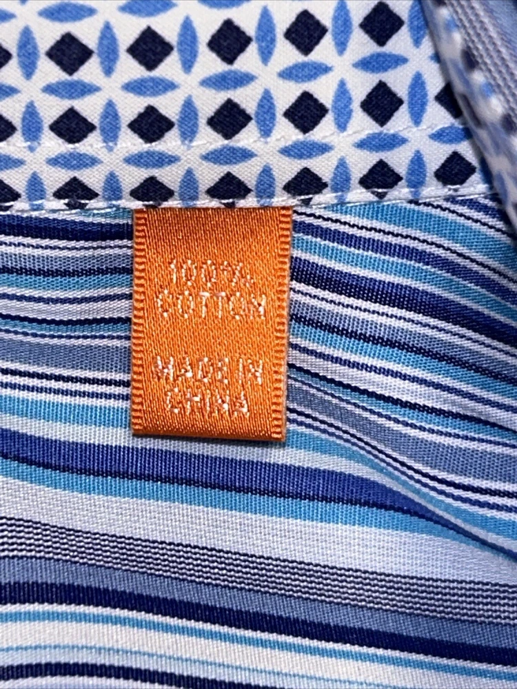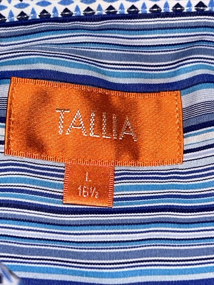 Tallia Dress Shirt Men Sz L Long Sleeve Blue Striped Cotton
