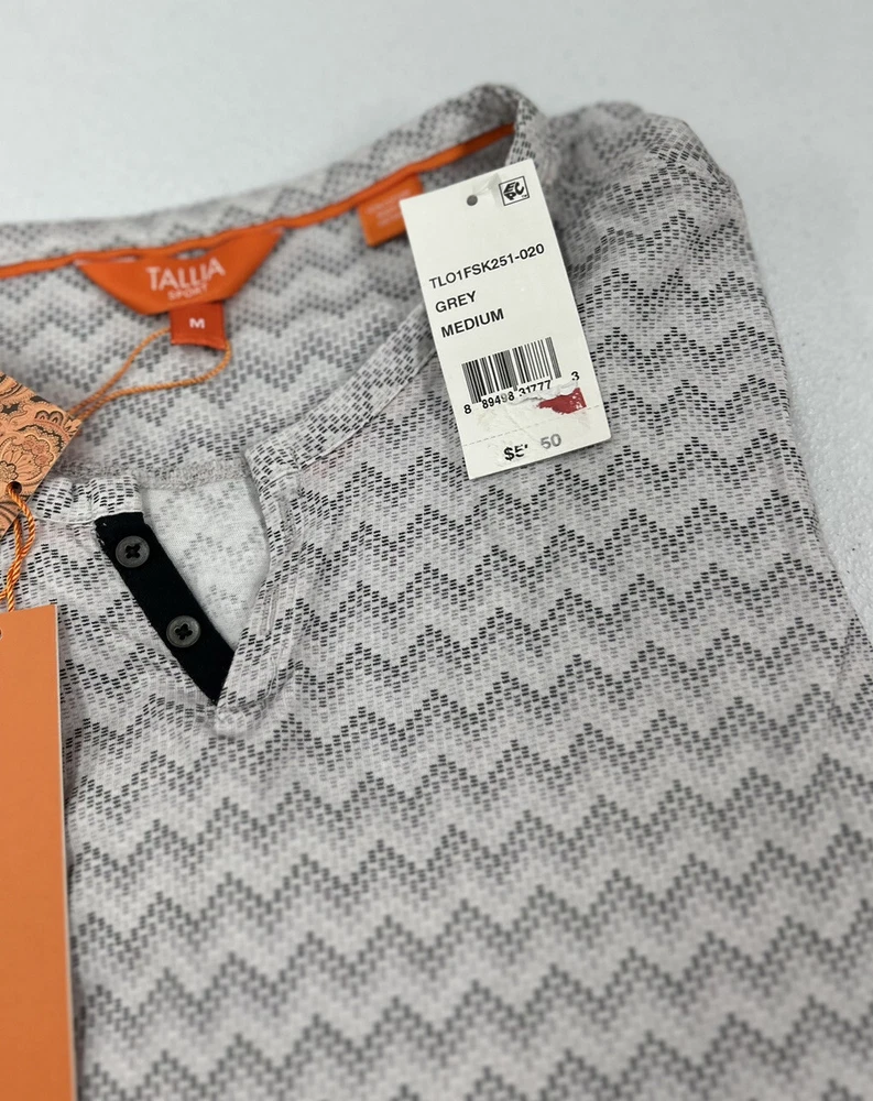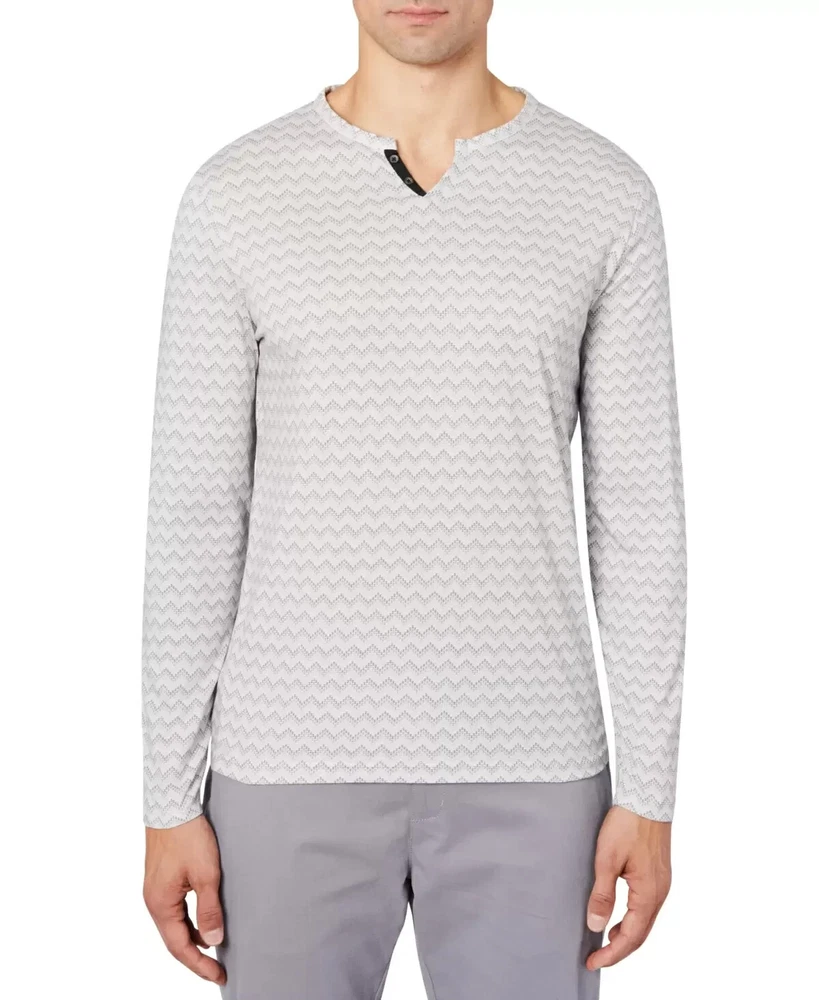 Tallia Men's Slim-Fit Stretch Textured Chevron-Print Long-Sleeve Henley Shirt Size: Medium Color: Gray 100%Cotton