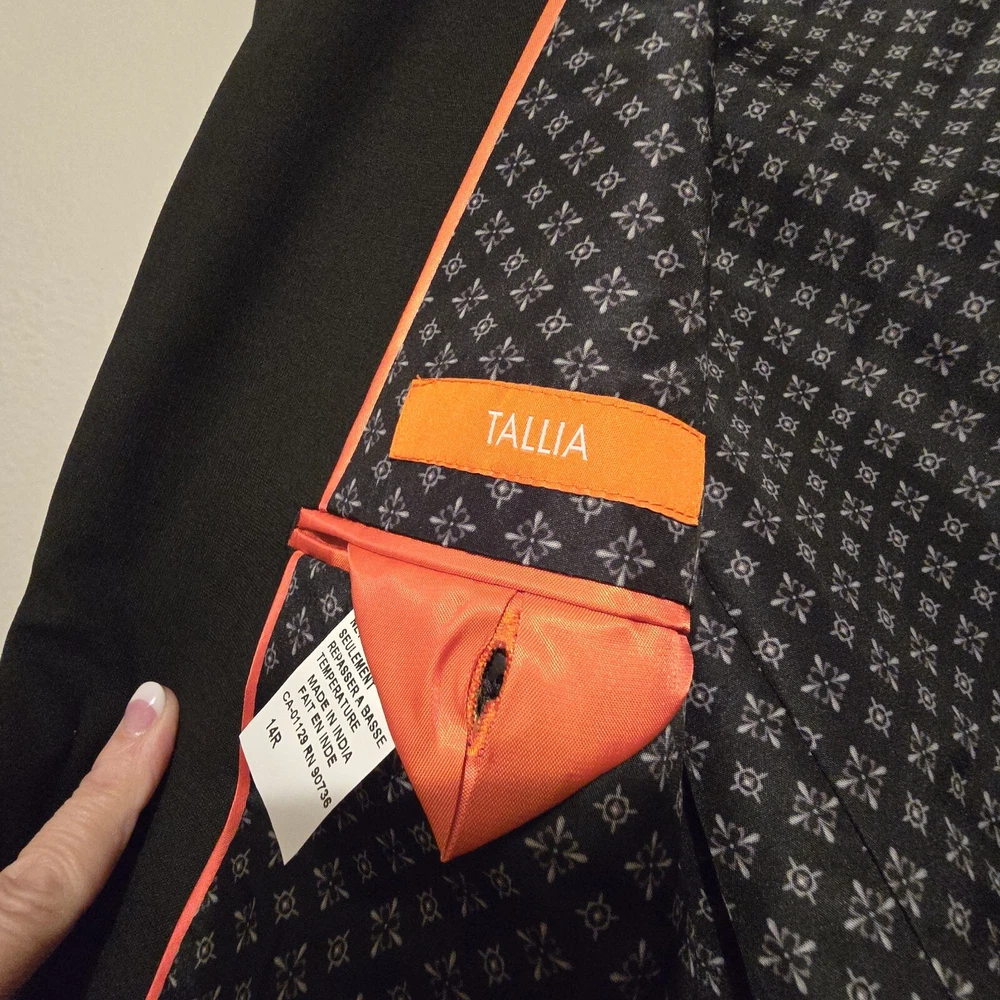 Tallia Suit Jacket Boys 14R Black Blazer Single Breast Two Button Formal Church Good condition See measurements in the pictures for fit