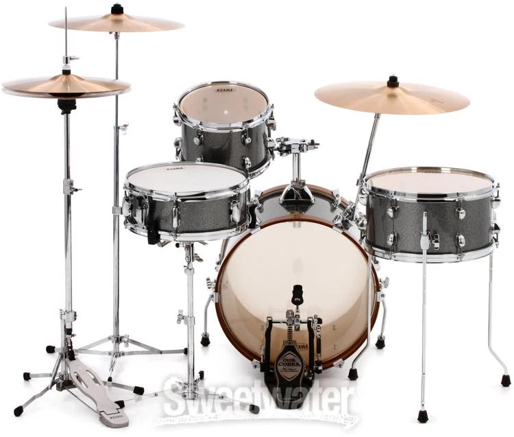 Retro-informed Travel Kit The TAMA Club-Jam brings throwback vibes and old-school cool to your stage or session. The 6-ply poplar/mersawa shells, which are both shallow and compact, are quick to speak, focused, lively, and easy gigging. Retro features include a kick-mounted cymbal boom, antique round badges, and curved bass drum spurs. The Club-Jam's finish is nicely offset by a pair of natural finished wood bass hoops. An optional bag set is available; not included. Hybrid poplar/mersawa shells Six plies of poplar and mersawa bring a warmth and liveliness to the Club-Jam's compact shells that may shock your senses. Shells are crowned with triple-flanged hoops for a classic, fat attack and antique round badges — a rarity from TAMA — for a hip throwback look. Whether you play swing or hip-hop, rock or funk, the Club-Jam from Sweetwater is sure to scratch an itch you won't find in other kits.TAMA Club-Jam Sweetwater is an Authorized Tama Dealer Genuine New Item Sweetwater's 2-year warranty Tama Club-JAM LJK48S 4-piece Shell Pack with Snare Drum - Galaxy Silver 4-piece Poplar/Mersawa Shell Pack with 10" Tom, 14" Floor Tom, 18" Bass Drum, and 13" Snare - Galaxy Silver Retro-informed Travel Kit The TAMA Club-Jam brings throwback vibes and old-school cool to your stage or session. The 6-ply poplar/mersawa shells, which are both shallow and compact, are quick to speak, focused, lively, and easy gigging. Retro features include a kick-mounted cymbal boom, antique round badges, and curved bass drum spurs. The Club-Jam's finish is nicely offset by a pair of natural finished wood bass hoops. An optional bag set is available; not included. Hybrid poplar/mersawa shells Six plies of poplar and mersawa bring a warmth and liveliness to the Club-Jam's compact shells that may shock your senses. Shells are crowned with triple-flanged hoops for a classic, fat attack and antique round badges — a rarity from TAMA — for a hip throwback look. Whether you play swing or hip-hop, rock or funk, the Club-Jam from Sweetwater is sure to scratch an itch you won't find in other kits. TAMA Club-Jam 4-piece Shell Pack Features: A throwback kit that travels easy Inspired by jazz kits of the past Shallow, compact sizes are quick and responsive 6-ply, 7mm poplar/mersawa shells speak with authority Natural finished wood bass hoops Kick-mounted cymbal boom Antique round badges Curved bass spurs Shell sizes (depth x diameter): 7" x 10" tom, 7" x 14" floor tom, 12" x 18" bass drum, 5" x 13" snare Specification Detail Finish Galaxy Silver Wrap Configuration Shell Pack with Snare Drum Number of Drums 4 Snare (Depth x Diameter) 5" x 13" Mounted Toms (Depth x Diameter) 7" x 10" Floor Toms (Depth x Diameter) 7" x 14" Bass Drums (Depth x Diameter) 12" x 18" Shell Material Poplar/Phoenix Tree Hybrid Tom Holders 1 x Single Tom Holder RETURN INFORMATION We want you to be completely happy with your purchase from Sweetwater. If you are not satisfied with your product, you may return it for a refund of the purchase price within 30 days. If your purchase was eligible for Free Shipping, the shipping cost will be deducted from your credit or refund. Returns must be in the complete and original packaging with all accessories and complete documentation (Owner's Manual, warranty card, quick start guides, etc.), show no signs of wear or use, and include a Return Authorization number or be subject to a restocking fee.
