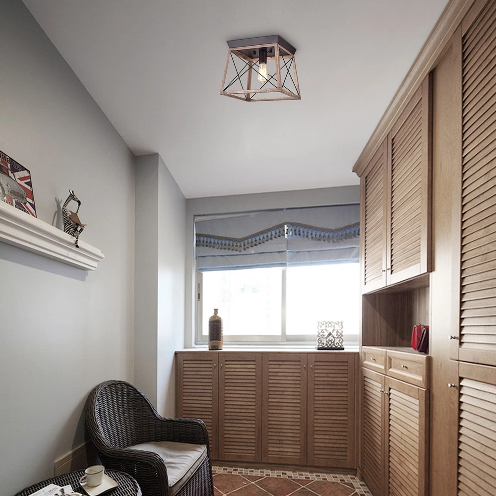 Description:This 1-light metal cage flush mount is an eye-catcher. The farmhouse-inspired light fixture features an open-cage frame composed of faux-wood with a brown oak finish. An X-brace design recalls old barn doors and farmhouse gates as it stretches across each side of the frame. The exposed bulb allow for maximum light flow to illuminate any room.Features:Lighting Type: Flush MountFixture Finish: Imitation Wood Grain+Oil Rubbed BronzeShade Material: MetalSetting: IndoorNumber of Lights: One (1)Bulb Type: (1) E26 60W (not included)HardwiredDimensions:Overall: L 12 x W 12 x H 10.3 inchesFixture: L 12 x W 12 x H 10.3 inches Free Shipping Over $49.99* Details Tamara Oil Rubbed Bronze 1-Light Open-Cage Metal Flush Mount Product Description: Description: This 1-light metal cage flush mount is an eye-catcher. The farmhouse-inspired light fixture features an open-cage frame composed of faux-wood with a brown oak finish. An X-brace design recalls old barn doors and farmhouse gates as it stretches across each side of the frame. The exposed bulb allow for maximum light flow to illuminate any room. Features: Lighting TypeFlush Mount Fixture FinishImitation Wood Grain+Oil Rubbed Bronze Shade MaterialMetal SettingIndoor Number of LightsOne (1) Bulb Type(1) E26 60W (not included) Hardwired Dimensions: OverallL 12 x W 12 x H 10.3 inches FixtureL 12 x W 12 x H 10.3 inches