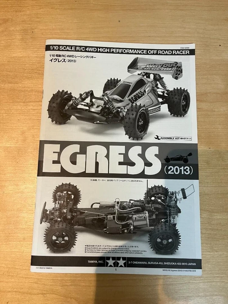 Tamiya 1/10 Egress Mechaless Body 2 Pieces RC Radio Control Car This is Tamiya [Reproduction] 1/10 Electric RC Assembly Chassis Kit Egress (2013). I bought it in February this year and ran about 4 packs in a park on flat dirt. I didn't jump, so I think there is almost no damage to the body. It is said to be the strongest on flat dirt, and it runs stable. It showed a powerful run even with a brushless and LIPO. I took up a lot of time with competitive radio control. I hardly touch it, so I am selling it. Items for sale - Egress main unit I have hardly touched it, but I have changed it to a high torque servo saver and changed the flange lock nut to red. - Instruction manual - 2 bodies Black body for driving (with scratches), green pattern for indoor decoration (not driven, but peeling due to installation) I made the black body myself, influenced by Mechanic After Hours. It has been checked for running before listing. There is deterioration over time, scuffs and scratches from driving, and small paint chips, but please understand that this is a used item. The item will be sold without the mechanism, so please provide your own motor, servo, ESC, receiver, battery, radio control, and charger. Basically, everything shown in the photos is included. Please understand that this is an amateur production. *Motor, servo, ESC, and battery are not included. Before shipping, the mechanism will be removed and briefly cleaned before sending. ★Please see before dealings★ 【Payment】 Please complete payment for auction items within 5 days 【 Shipping 】 ※Usually goods will be shipped within 3 business days after payment is received. ※Time of delivery depend on the country or region. ※Package will be send by JAPAN POST OFFICE or YAMATO or Fedex with tracking number. It will be arrived about 1week ~ 3weeks on average after shipping information is provided. International Buyers - Please Note ・ Import duties, taxes and charges are not included in the item price or shipping charges. These charges are the buyer’s responsibility. ・ Please check with your country’s customs office to determine