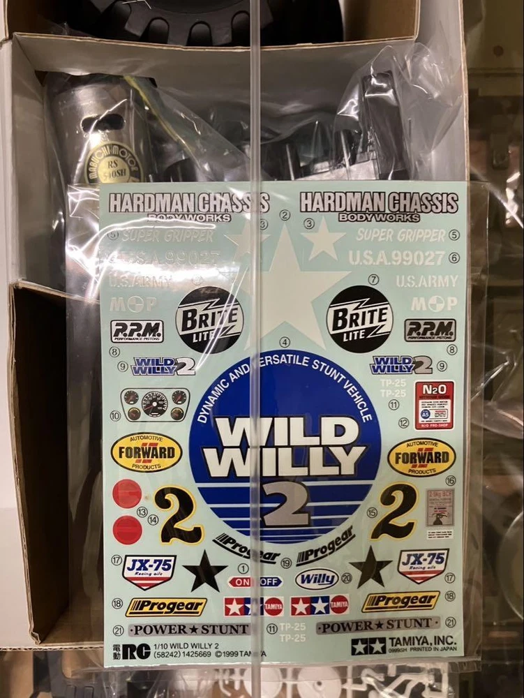 Item Title Tamiya 1/10 Electric RC Car Series No.242 Wild Willy 2 Off Road 58242 Japan Description 【Product Details】Power supply: 7.2V battery (*sold separately)* This product does not include a controller, battery, or charger.* Please note that we do not guarantee the presence or absence of batteries or remaining batteries for used products. Payment Supports managed payments Please pay within 5 days after auction is finished. About Us We are located in Japan. It's our pleasure to make you happy by proposing our recommend item. If you have any questions or request about items, please feel free to ask us. International Buyers - Please Note: -Import duties, taxes, and charges are not included in the item price or shipping charges. These charges are the buyer's responsibility. -Please check with your country's customs office to determine what these additional costs will be prior to bidding/buying. -These charges are normally collected by the delivering freight (shipping) company or when you pick the item up - do not confuse them for additional shipping charges. -We do not mark merchandise values below value or mark items as - gifts - The US and International government regulations prohibit such behavior. Thank you for your understanding.