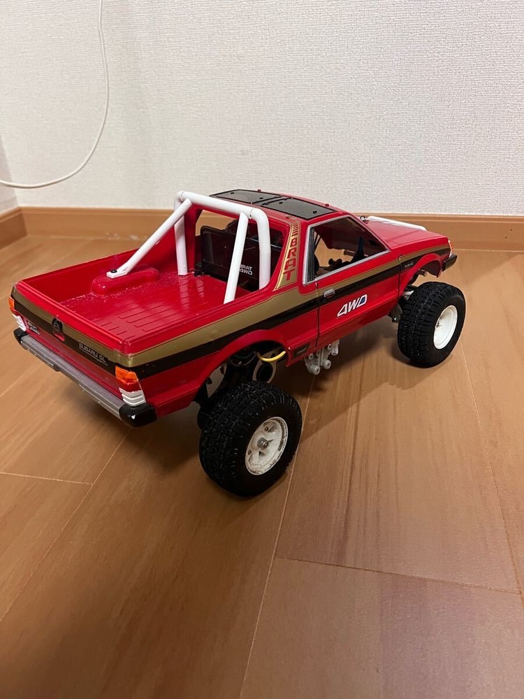 Snagged this vintage Tamiya Subaru Brat at a steal! Despite some cosmetic wear, it fired right up with the included transmitter, battery, and charger. A perfect project for a hobbyist to restore or use for parts.