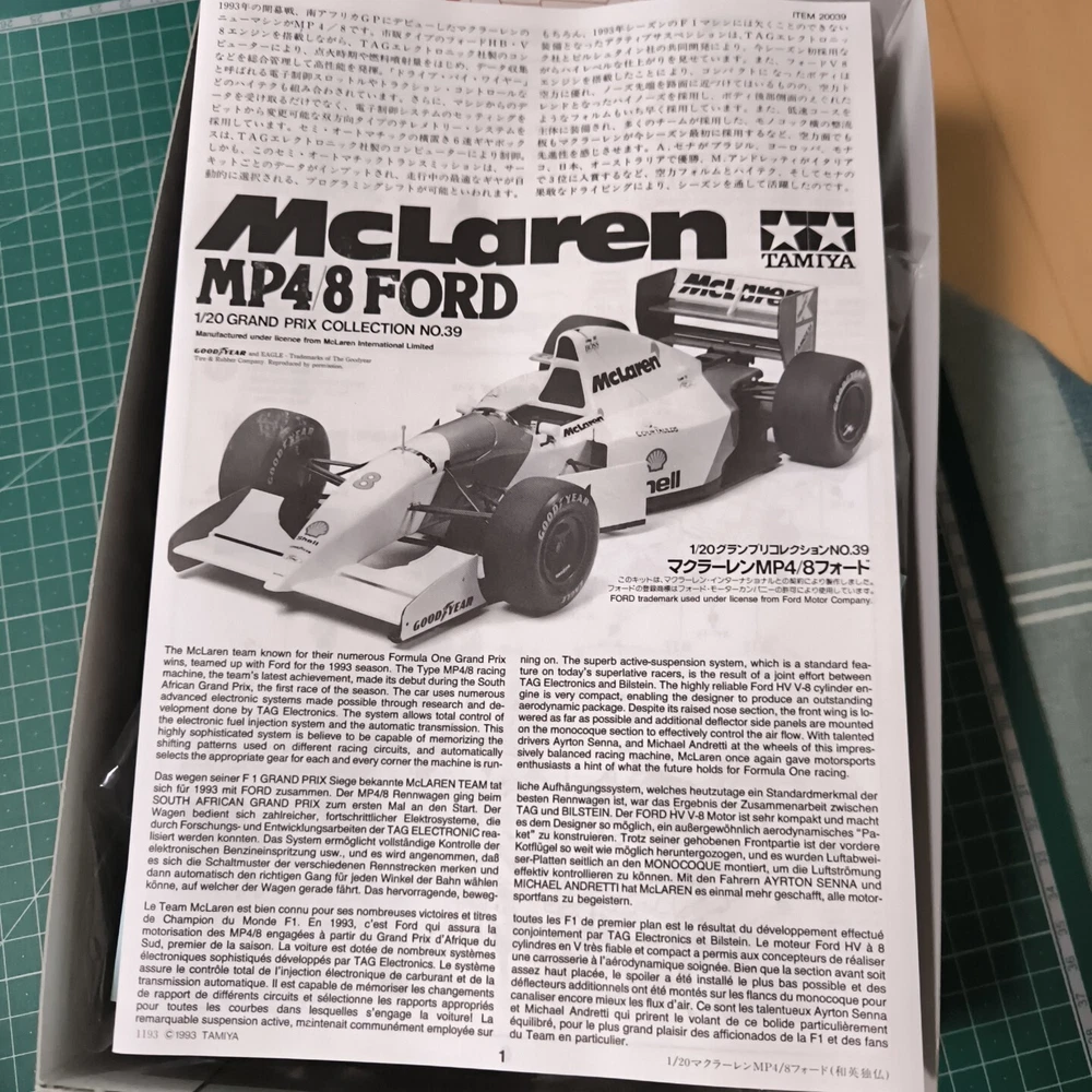 Tamiya 1/20 Mclaren MP4/8 Ford Sports Car Series No.39 Payment is due within 5 days after the auction ends. Shipping Normally, items are shipped within 5 business days after payment is received. Shipping times vary by country or region. Packages are shipped by FedEx. Items arrive in approximately 8-12 days after shipping to the continental US. For areas outside the US, we ship by FedEx Expedited Shipping and arrive in approximately 2-5 days after shipping (additional fees may apply. International Buyers - Import duties, taxes, and fees are not included in the item price or shipping cost. These charges are the buyer's responsibility. Please check with your country's customs office for more information.