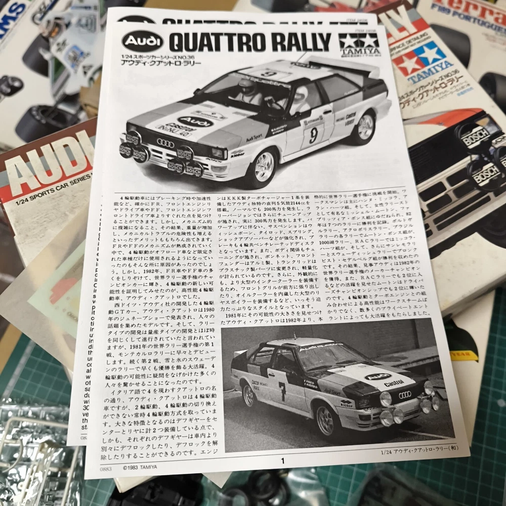 Tamiya 1/24 Audi Quattro Rally Sports Car Series No.36 Payment is due within 5 days after the auction ends. Shipping Normally, items are shipped within 5 business days after payment is received. Shipping times vary by country or region. Packages are shipped by FedEx. Items arrive in approximately 8-12 days after shipping to the continental US. For areas outside the US, we ship by FedEx Expedited Shipping and arrive in approximately 2-5 days after shipping (additional fees may apply. International Buyers - Import duties, taxes, and fees are not included in the item price or shipping cost. These charges are the buyer's responsibility. Please check with your country's customs office for more information.