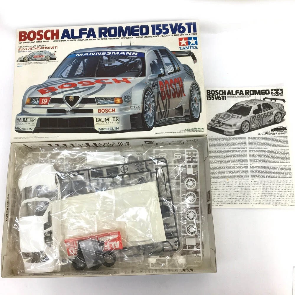 Tamiya 1/24 Bosch Alfa Romeo 155 V6 TI used Plastic model unassembled Description In the 1996 International Touring Car Championship, the Alfa Romeo team competed with Opel for the manufacturer's title until the very end. This plastic model kit reproduces the Bosch-colored Alfa Romeo car that was a part of the Alfa Romeo team in the 1996 International Touring Car Championship. The model features a front spoiler, front and rear fenders, uniquely shaped door mirrors that rise up along the A-pillars, and a rear diffuser, all designed for aerodynamics. The low-mounted V6 engine, transmission, push-rod type front and rear suspension, and other mechanisms are precisely reproduced to reveal the secret of the car's speed. Specs. 196mm in length and 80mm in width when completed Shipping We will ship by DHL or FedEx or Japan Post International Buyers - Please Note: Import duties and taxes are not included in the item price or shipping cost. Please check with your country’s customs office to determine these additional costs prior to bidding or buying. Additionally, if the delivery address is in a remote area, there may be additional charges by FedEx or DHL. If such charges occur, you may be asked to pay an additional $15 to $20.