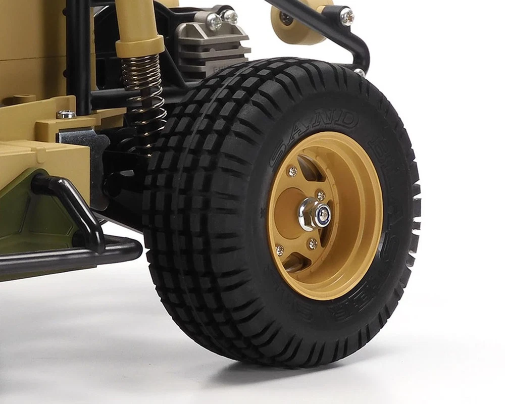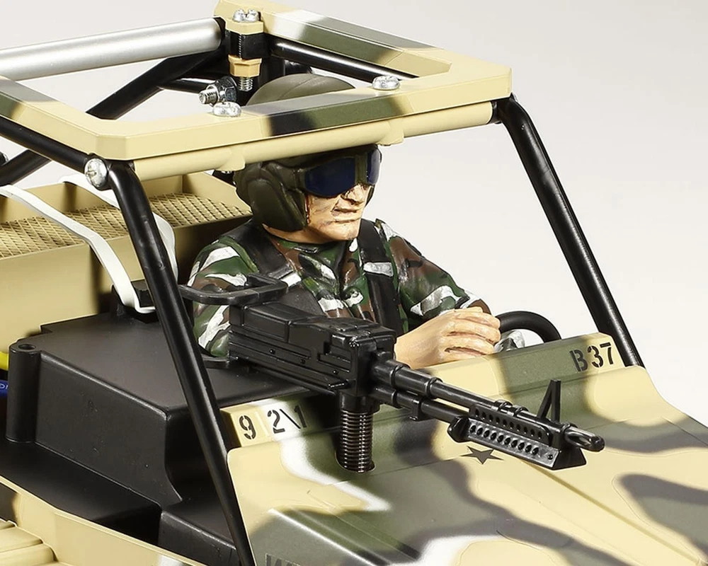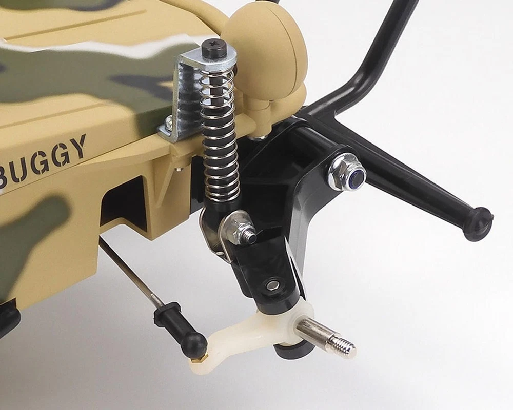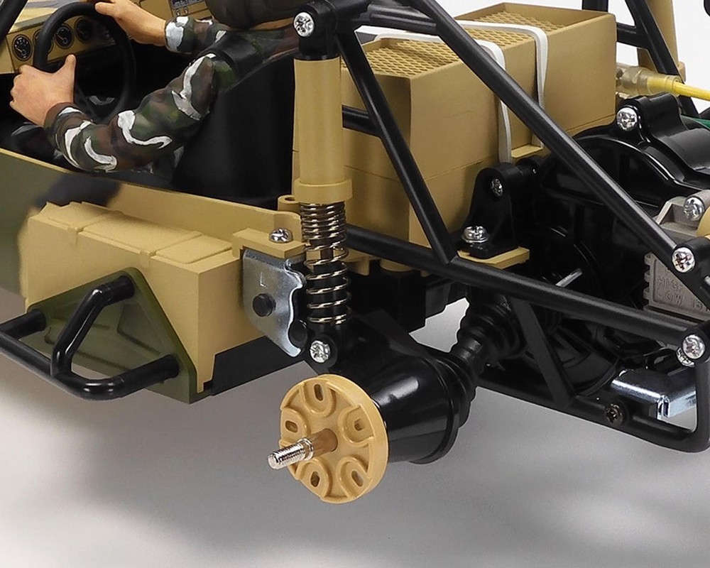 Versatile & Fun Military Style R/C Car Experience the thrill of military-inspired off-road action with the Tamiya Fast Attack 2011 1/10 2WD Electric Buggy Kit—a perfect blend of scale realism and rugged performance, designed to conquer any terrain with its authentic detailing and robust engineering. About the Fast Attack 2011 Design The Tamiya Fast Attack 2011 1/10 2WD Electric Buggy Kit offers an exceptionally realistic scale appearance, making it a standout model for collectors and hobbyists alike. The attention to detail is evident in the meticulously molded ABS plastic body, which captures the rugged, utilitarian look of a military-style special vehicle. The included roll cage adds to the authenticity, providing both a functional and aesthetic element that enhances the vehicle’s off-road readiness. The driver figure is intricately designed, adding life to the model, while the M60 machine gun and soldier figure contribute to the military-themed realism. Semi-pneumatic grooved front tires and block-pattern rear tires not only provide superior traction but also replicate the look of off-road tires used on actual military vehicles, completing the model’s authentic and commanding appearance. Drivetrain & Electronics The drivetrain of the Fast Attack 2011 is engineered for both durability and performance, making it well-suited for challenging off-road conditions. The model features a rear-wheel-drive (2WD) setup powered by a Type 540 brushed motor, which is managed by the included HobbyWing THW 1060 Brushed Motor ESC. This electronic speed controller is compatible with 2-3S batteries, providing flexibility in power options and ensuring responsive throttle control. The gearbox is enclosed, a crucial feature that protects the internal gears from dirt and debris, ensuring smooth and reliable operation even in the harshest environments. The gear differential, combined with plastic bushings, offers a balance of performance and longevity, making the Fast Attack 2011 a robust and capable off-road buggy. Suspension The suspension system of the Tamiya Fast Attack 2011 is designed to handle rugged terrains with ease, offering a smooth and stable ride across a variety of surfaces. The fully independent front and rear suspension employs trailing arms and friction dampers, which work together to absorb shocks and maintain tire contact with the ground. This setup is ideal for off-road driving, where uneven terrain can challenge a vehicle’s stability. The wide 186mm tread enhances the buggy’s off-road capabilities by providing a stable platform that reduces the likelihood of rollovers and improves handling. The sealed gearbox further complements the suspension system by preventing debris from interfering with the drivetrain, ensuring consistent performance regardless of the conditions. Together, these features make the Fast Attack 2011 not just a visually impressive model, but a highly capable off-road machine as well. Features: Realistic driver figure and M60 machine gun Durable molded ABS body and roll cage Fully independent front and rear suspension Enclosed gearbox for dirt and debris protection Includes HobbyWing THW 1060 Brushed Motor ESC (2-3S) Semi-pneumatic grooved front tires and block-pattern rear tires Camouflage pattern stickers included for scale realism Lightweight yet durable ABS tub-style chassis Adjustable gear ratio for optimized performance Plastic bushings and dogbone-type driveshaft joints for enhanced durability Includes: (1) Fast Attack 2011 1/10 2WD Electric Buggy Kit (1) HobbyWing THW 1060 ESC (2-3S) (1) 540-Brushed Motor (4) Wheels & Tires Body Set Needed To Complete: (1) 2-Channel Radio/Receiver System (1) Steering Servo (1) 1-2S (7.2-7.4V) Battery (1) Compatible Charger Tamiya TS paint Specifications: Scale 1:10 Drive 2WD Power Source 2S LiPo Length 16.93in (430mm) Wheelbase 10.04in (255mm) Width 8.66 (220mm) Height 5.91in (150mm) Weight 42.33oz (1200g) Assembly Level Kit *NOTE: RC Kits are an unassembled Remote Control Model that require assembly, racer selected electronics, and other racer provided items. Photos of assembled kit are for illustrative purposes only. For a complete list of needed items to drive this kit please see the list above. Manuals: User Manual About Us | View Store