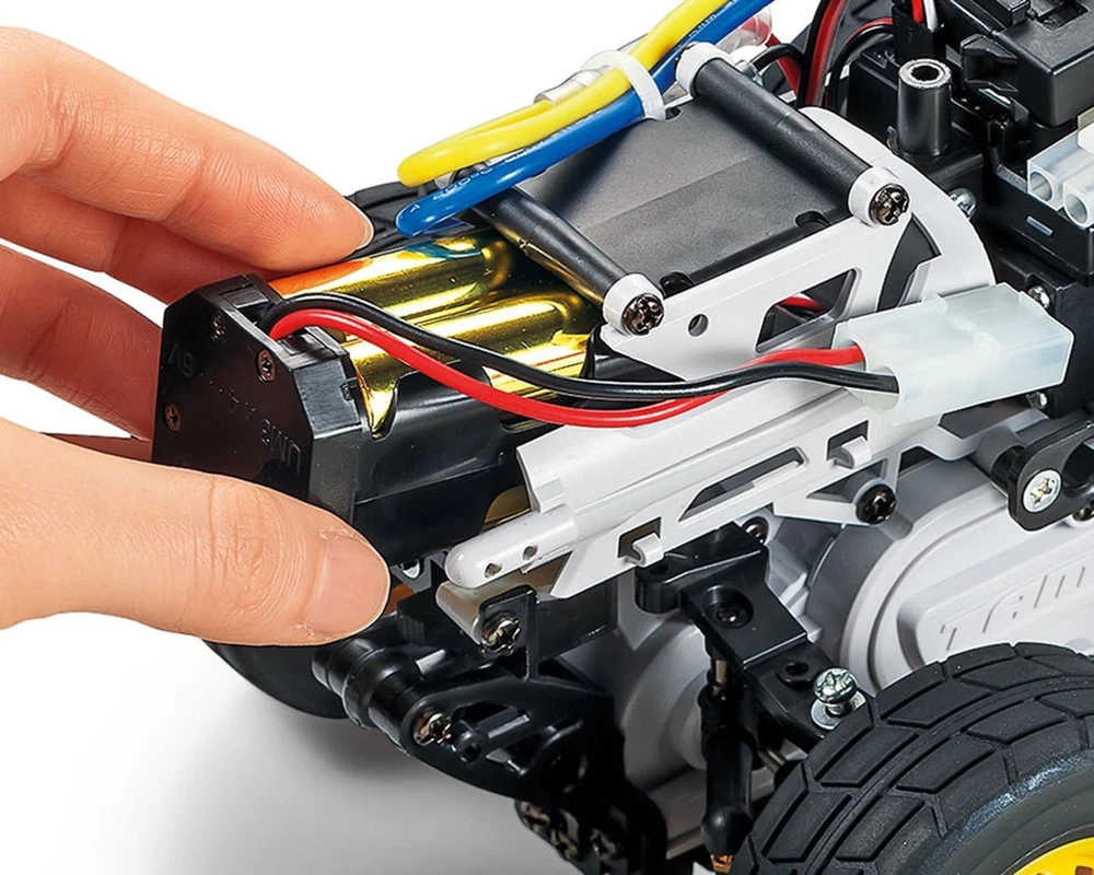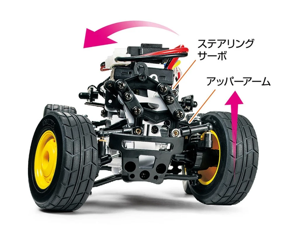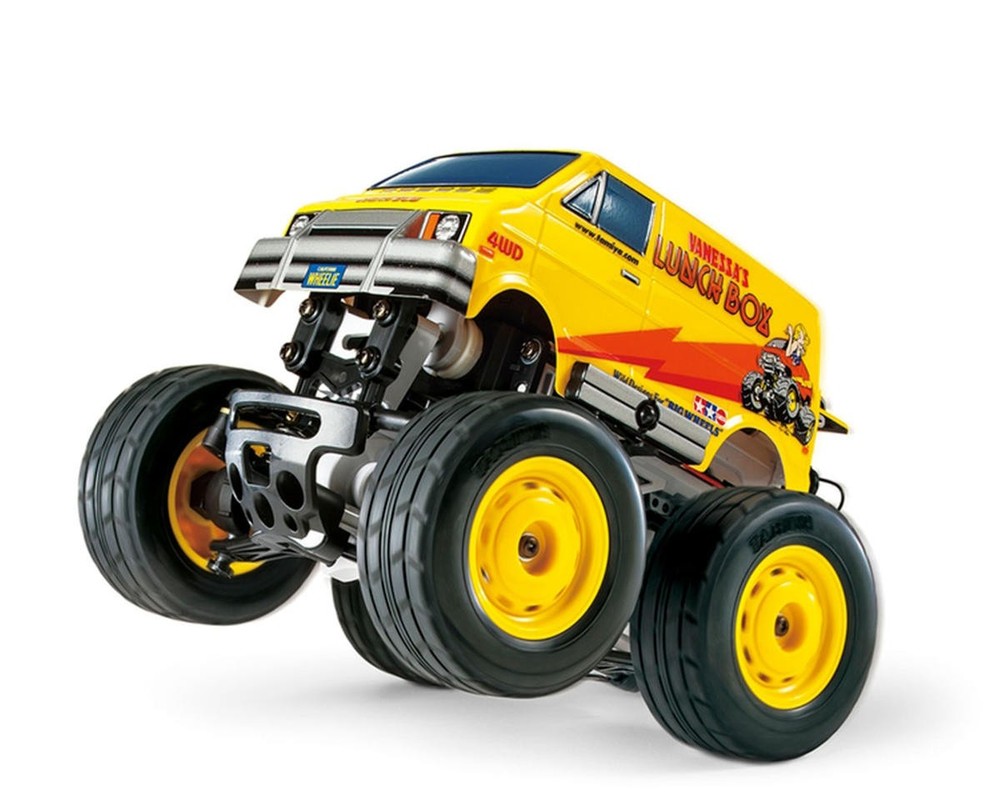 The Tamiya Lunch Box Mini 1/24 Mini Kit takes the classic Lunch Box body and shrinks it down to fit on top of the 4WD SW-01 chassis. It is capable of 4-wheel steering using separately sold Upper Arm Connectors that not only allows you to steer with all four wheels on the ground, but it also allows the vehicle to steer while doing wheelies! NOTE: Finished kit shown in photos is for illustrative purposes only. This is a kit that requires assembly. See needed to complete list below for a list of items required to complete the model. Features: The steering uses 1-piece upper arms for a tight turning circle and the body leans to help suppress tumbles It can be converted into a 4-wheel steering setup with TAM54898 SW-01 Upper Arm Connectors (not included) The body is attached to the body mounts using magnets for quick attachment The included Type 370 motor is located right in the center of the SW-01 chassis, in a gear-driven 4WD setup with a gear ratio of 21.875:1 1/24 scale R/C model assembly kit The famous Lunch Box body is molded in lightweight and durable polycarbonate and is pre-painted The body leans in the direction in which the model steers, achieving remarkably tight turning circles Responsive 4WD Strut style suspension Can be used with standard size servos and R/C equipment despite its compact nature Big, tread patterned tires give superb traction and add to the overall cartoonish look of the Lunchbox Mini Dish type wheels Compatible with Tamiya LF Battery LF1100-6.6V Racing Pack (M-Size) as a power source Specifications: Length: 190mm Width: 146mm Height: 140mm Needed to Complete: 2-Channel Radio Standard size servo Brushed ESC 7.2-7.4v battery pack (Battery pack size must be less than 66x36x15mm) Compatible charger About Us | View Store