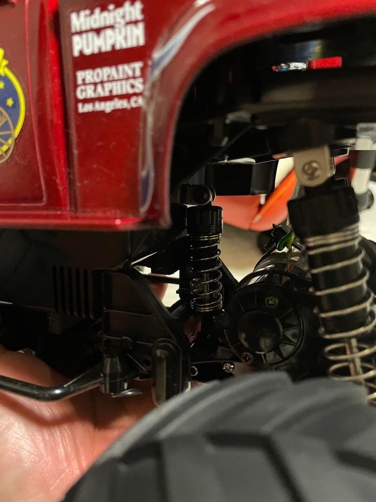 This Tamiya Midnight Pumpkin RC car is a beast! The custom paint job looks amazing with its frost red finish, and the upgraded aluminum wheels and CVA oil dampers give it a premium feel. Everything works perfectly—the new QuickRun 1060 ESC and servo are smooth. Never driven, just tested, so it's in flawless condition. Just add your own receiver, battery, and radio to hit the road. A must-have for RC enthusiasts!