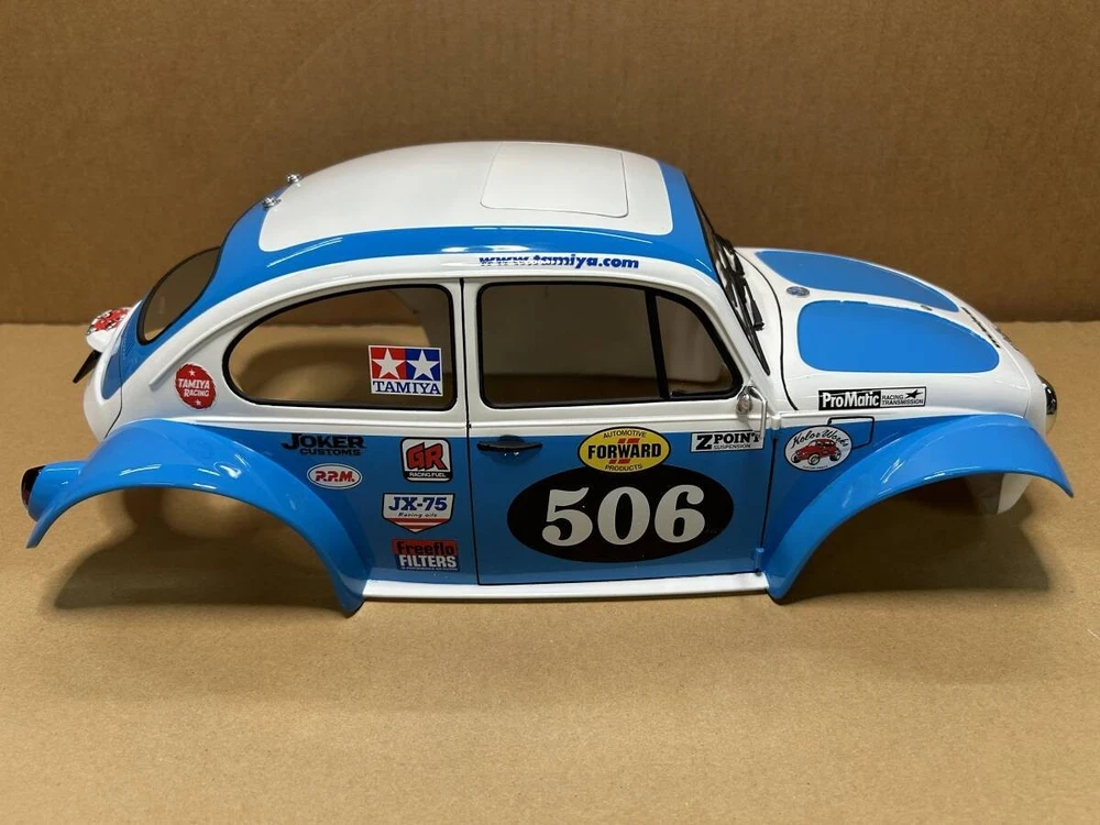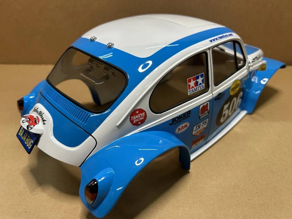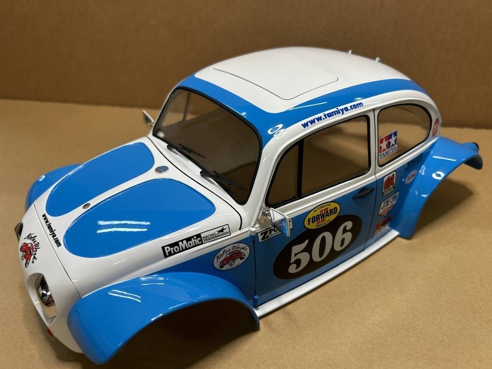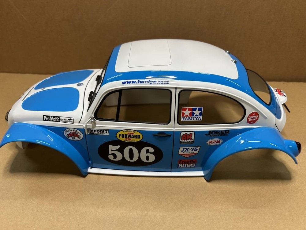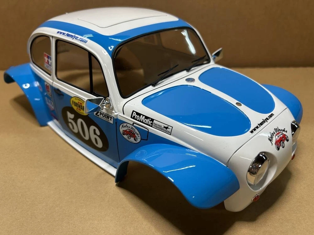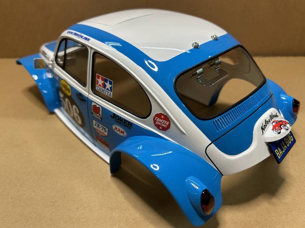 This is a Miya Resale Volkswagen Off-Roader body, painted and with eight pre-drilled holes for installing electric lights. The holes are pre-drilled to accommodate 5mm LEDs for the front lights, 5mm LEDs for the rear lights, 3mm small LEDs for the front lights, and 3mm small LEDs for the license plate light. Simply insert the LEDs and secure them in place. (We use reinforced aluminum tape to minimize light leakage into the body.) Due to the lighting requirements, the headlight components (plated parts), taillight components, small LEDs, and license plate light components are glued together with adhesive, while the taillight components and license plate light are filled with epoxy putty to minimize light penetration. The paint job was completed after the molding marks were removed, followed by a primer, two-tone paint (pure white and light blue), a clear coat, and stickers. The sunroof is temporarily attached with tape from the inside. The matte black paint (window frames, etc.) was applied by brush. As this was made by an amateur, there are some areas where the paint is rough, such as paint lines and brush painted areas, so please refrain from purchasing if you are looking for perfection. ★Please see before dealings★ 【Payment】 Please complete payment for auction items within 5 days 【Shipping】 ※Usually goods will be shipped within 3 business days after payment is received. ※Time of delivery depend on the country or region. ※Package will be send by JAPAN POST OFFICE or YAMATO or Fedex with tracking number. It will be arrived about 1week ~ 3weeks on average after shipping information is provided. International Buyers - Please Note ・Import duties, taxes and charges are not included in the item price or shipping charges. These charges are the buyer’s responsibility. ・Please check with your country’s customs office to determine
