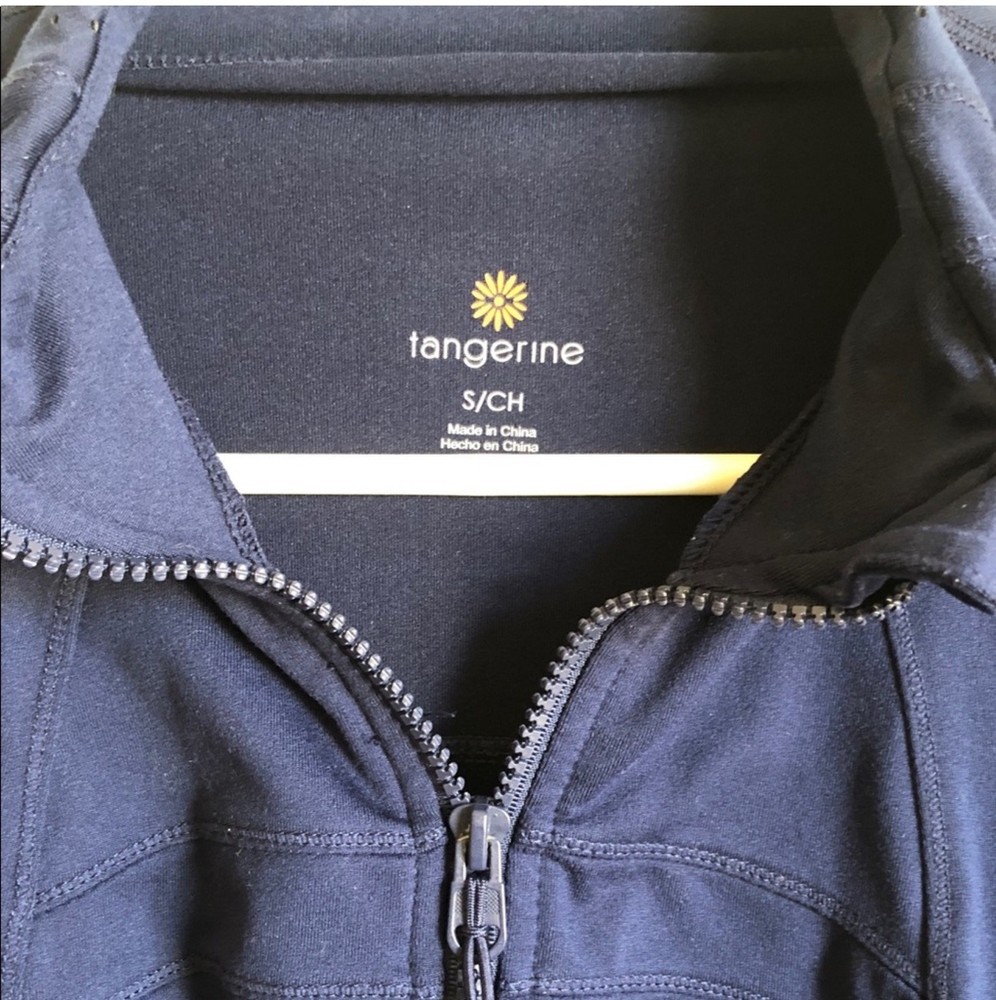 The Tangerine Women's Full-Zip Athletics Jacket in deep blue is a stylish and functional activewear piece designed for the active woman. Made from a polyester blend outer shell and lining material, this jacket offers a comfortable fit for running and jogging. With a full zip closure and athletic fit, it provides both style and performance. The colorful theme adds a fun and vibrant touch to the track jacket, making it a standout piece for any workout. 17 inches chest flat lay T3