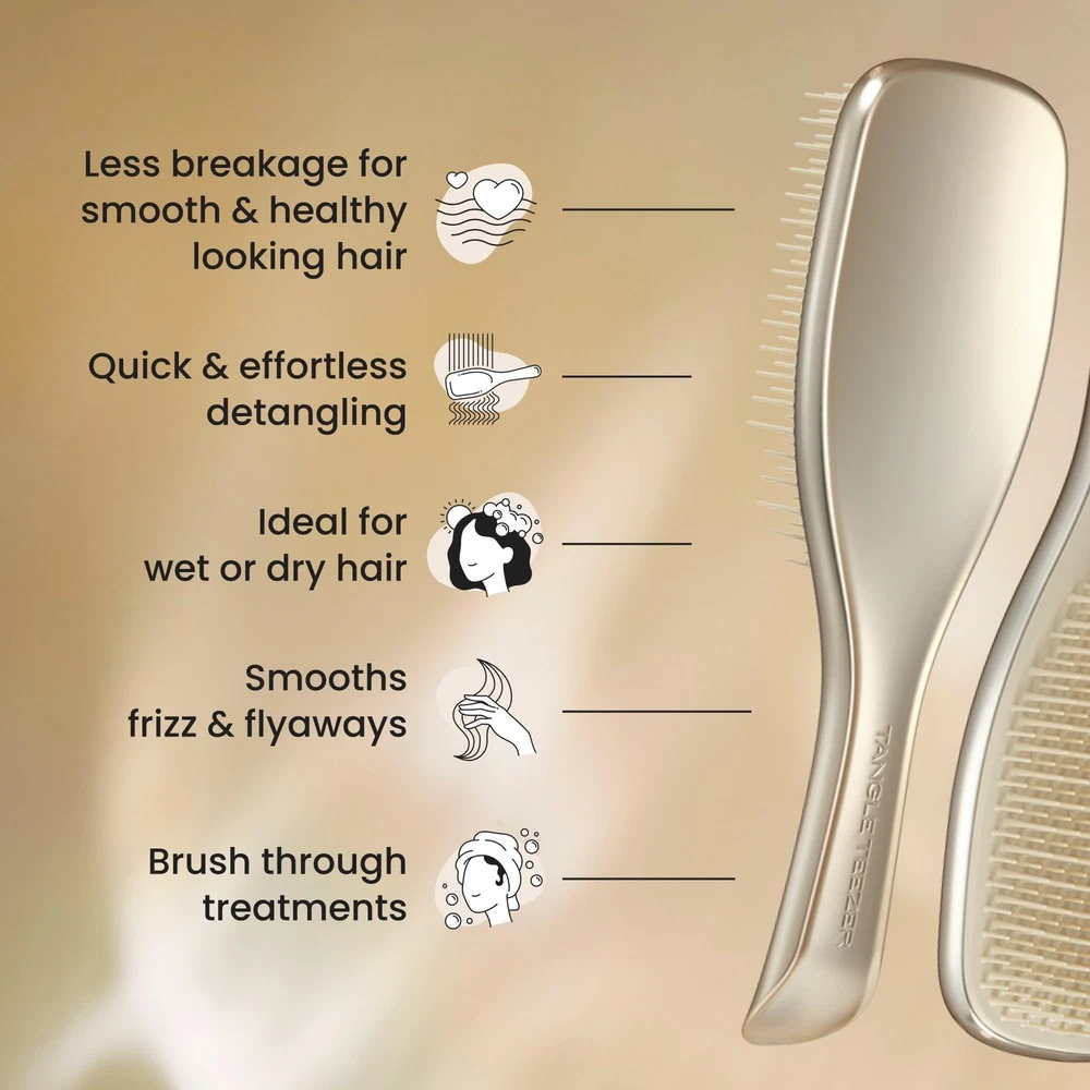 Tangle Teezer Chrome Ultimate Detangler Brush for Wet & Dry Champagne Gold Description Features: Chrome Brilliance: Tangle Teezer’s iconic Ultimate Detangler in a sleek, chrome finish, with regular flex teeth that work effortlessly to detangle hair Patented Two-Tiered Teeth: The long teeth gently detangle knots while short teeth smooth the cuticle, helping reduce breakage and split ends on wet or dry hair All Hair Types: Whether your hair is straight, wavy, or curly, this detangling brush works painlessly for adults, teens, and kids alike Gentle Detangling: Hairbrush that’s tough on knots but gentle on your scalp, no tugging or pulling here Shower-Friendly Design: Water-resistant and easy to grip, this hair brush is ideal for distributing conditioner or treatments evenly in the shower Product Details: Handling We will ship all orders within 1 business day of payment. Delivery We Do Not Ship Outside of the Continental US. Return Policy All items qualify for returns within 30 days of receipt. Buyer is responsible for return shipping on any item that is not damaged. Feedback We take our reputation seriously, we buy and sell online, so we understand the value of trust. If you are unsatisfied with your order, please contact us and we will work with you to resolve it to your satisfaction.