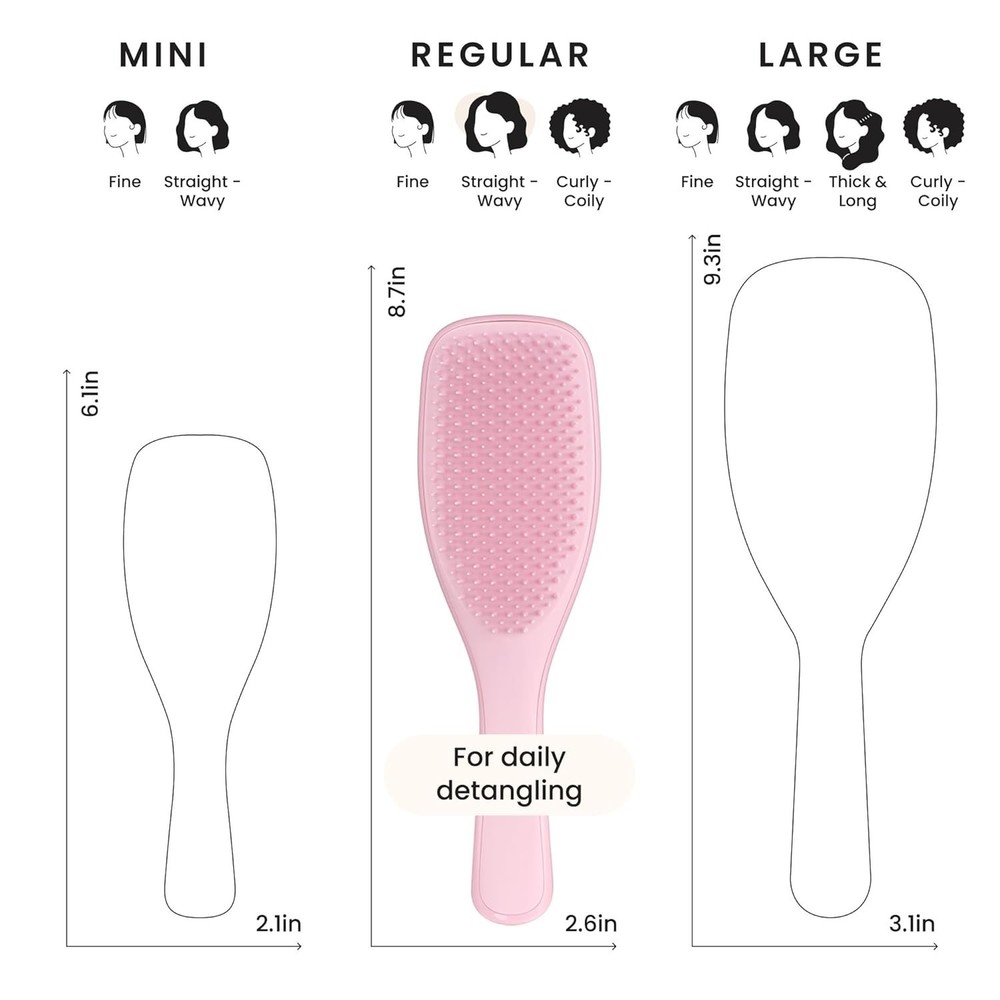 This Tangle Teezer hair brush has regular-flex teeth that gently detangle straight to wavy strands. Featuring our patented two-tiered teeth technology. The long, flexible teeth detangle, remove knots and reduce breakage, while the short teeth smooth strands, for frizz-free hair.Hair brush for women and men that’s tough on knots but gentle on your scalp, no tugging or pulling here.This versatile detangler brush has soft teeth that work effortlessly to detangle wet or dry hair for less breakage and more TLC.It Ideal wet brush for evenly distributing hair products like conditioning treatments and masks, leaving your locks silky smooth. We are making our packaging more sustainable, and the packaging you receive during this transition may vary.