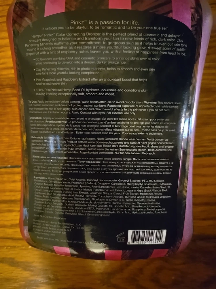 From left to right Bloomin' Dark natural bronzer in 13.5 oz bottle, Euphoria bronzing cream oil in 9.5 oz bottle, Hempz Black Label tan maximizer in 8 oz bottle, Tan Candy tingle bronzing creme in 8.5 oz bottle, Booty Bronze in 10.1 oz bottle and Hempz CC Bronzer in 13.5 oz bottle.