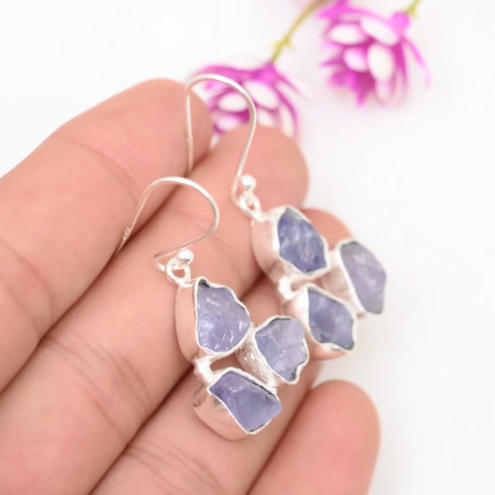 HomeTanzanite Gemstone Earrings in 925 Sterling Silver Handmade Wedding Jewelry Gift