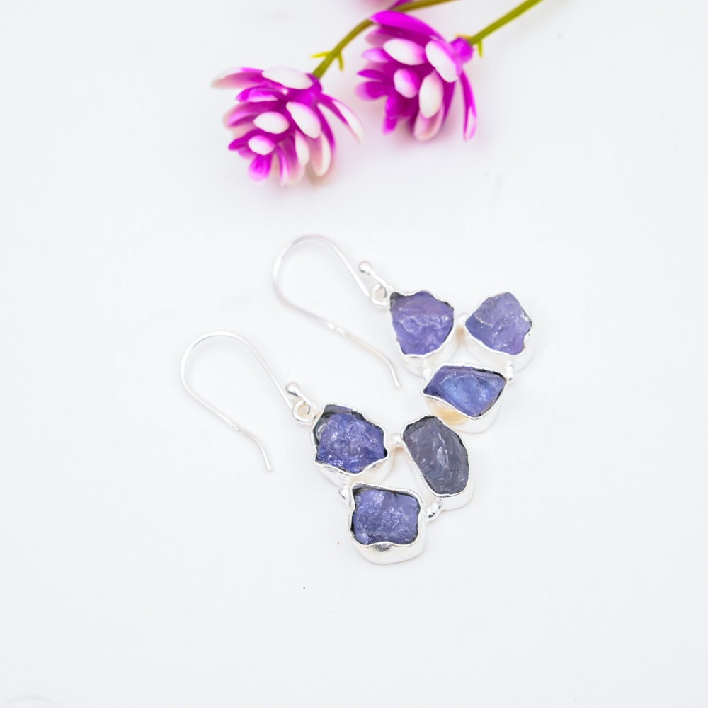 Tanzanite Gemstone Earrings in 925 Sterling Silver Handmade Wedding Jewelry Gift