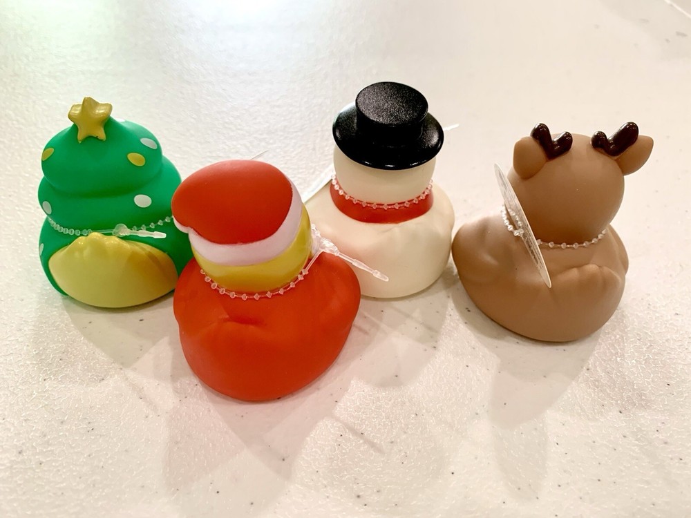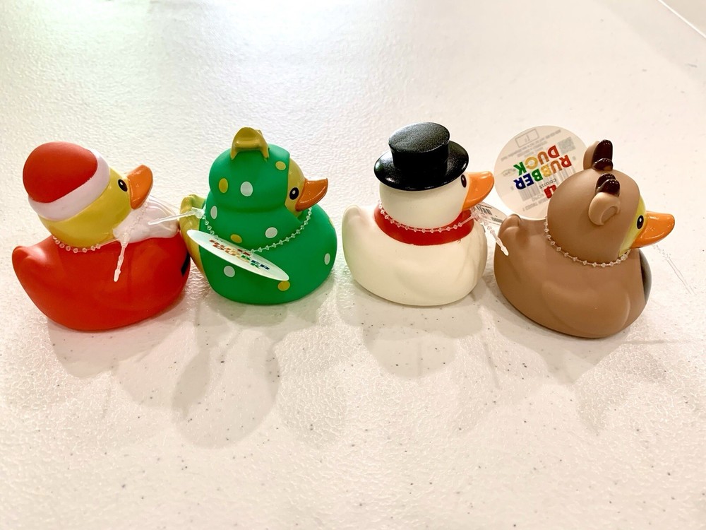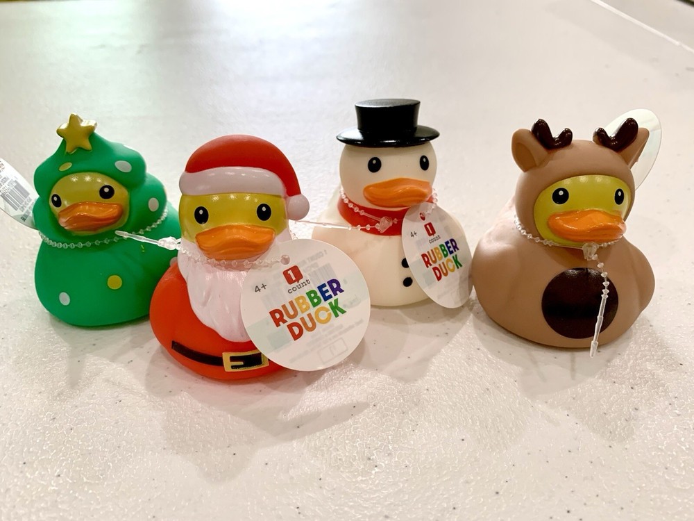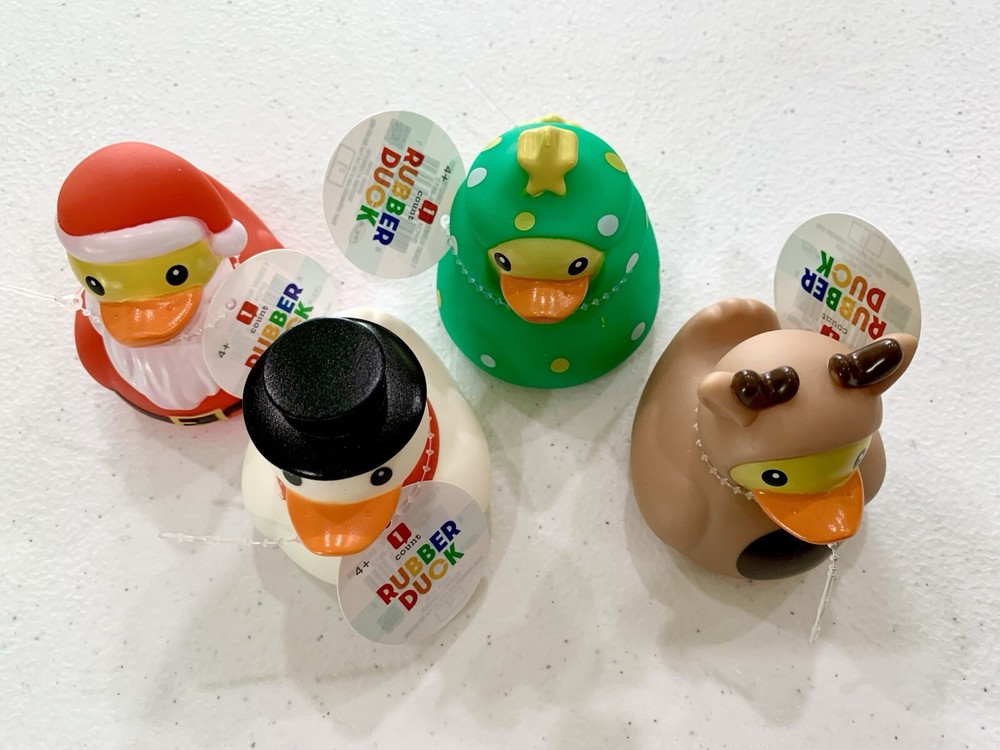 Add a splash of festive fun to your holiday decor with the Target Bullseye Playground Set of 4 Christmas Holiday Rubber Ducks. These colorful ducks are made of durable plastic, ensuring they can withstand the holiday hustle and bustle. Each duck is designed with a unique, multicolored motif, perfect for brightening up your seasonal displays.