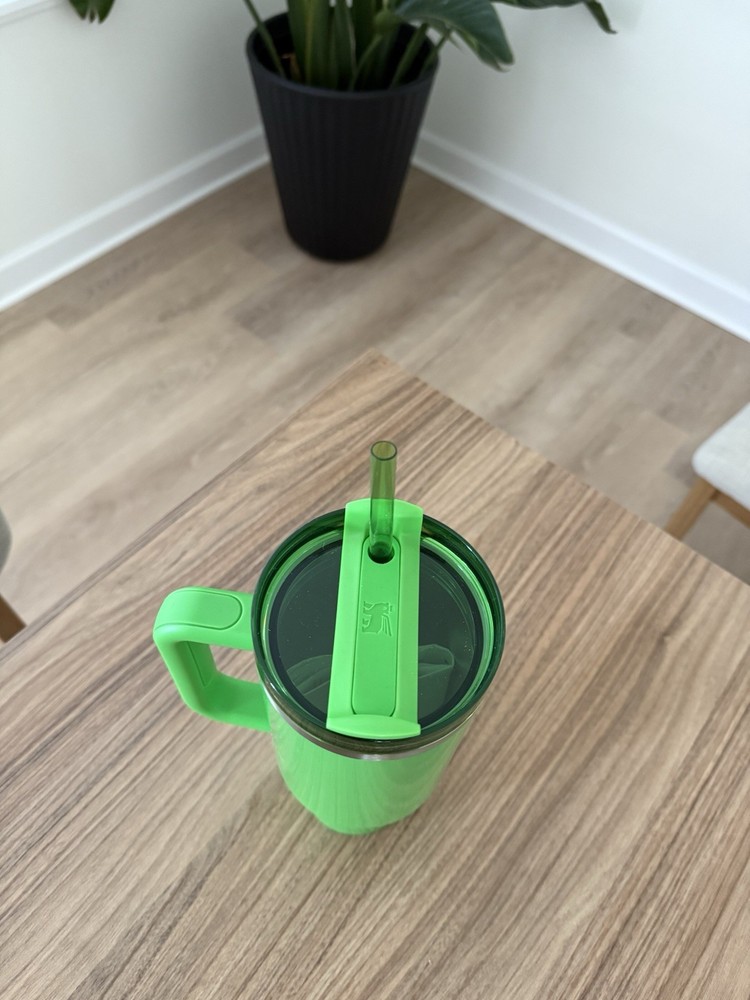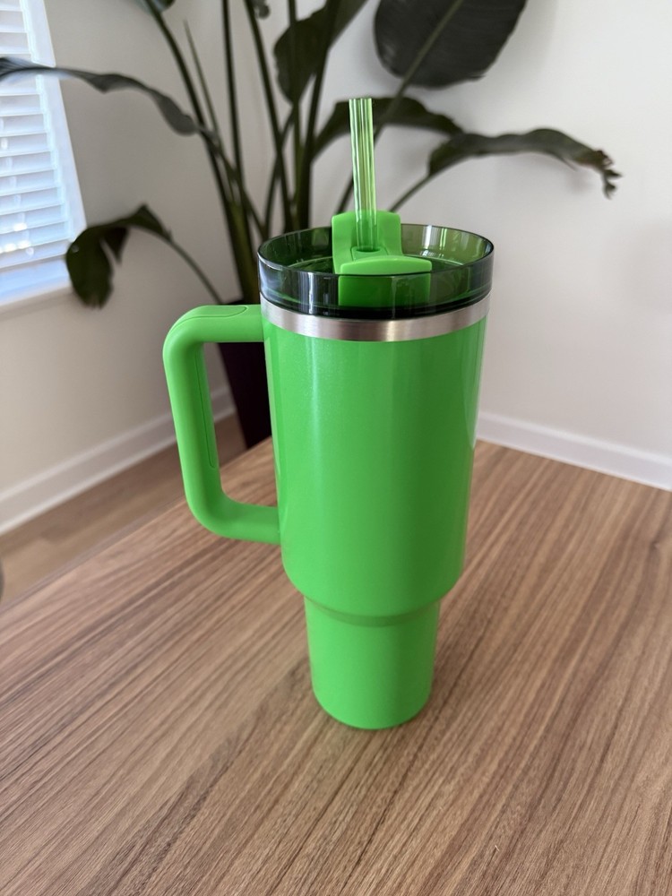 The product is a 40oz Pearl Green Starbucks X Stanley reusable cup, featuring original advertising for the brand. The theme of the cup revolves around coffee and tea, making it a perfect choice for coffee enthusiasts. The green color adds a touch of eco-friendly vibes to the design, making it a stylish and sustainable choice for on-the-go beverages.