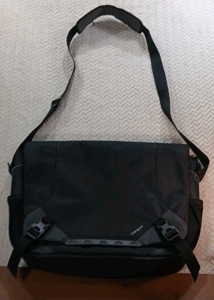 The 17 x 12 x 4 Targus AC0069 Large Laptop Messenger Bag is a durable and practical solution for carrying your 16-inch laptop. Made from a combination of nylon, polyester, and mesh materials, this bag is water-resistant and features padded partitions to protect your device. The sleek black color and solid pattern make it versatile for any occasion, while the shoulder strap adds convenience for easy transportation. With its spacious interior and reliable Targus brand, this messenger bag is ideal for those looking to keep their laptop safe and secure on the go.