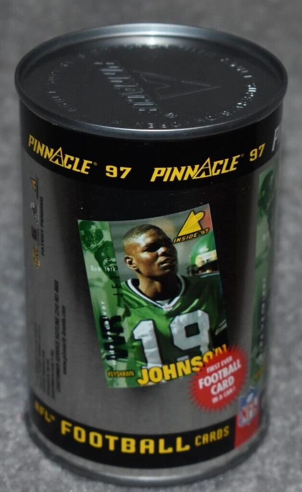 THIS IS A LISTING FOR 1997 PINNACLE INSIDE CARDS IN A CAN. CONTAINS 1 PACK OF CARDS WITH TEN CARDS IN THE PACK. THE CAN PICTURES NEW YORK JETS KEYSHAWN JOHNSON. IT IS NOT OPENED. IT MAY/HAS SLIGHT MARK/MARKS ON TOP/SIDES OF THE CAN AS PICTURE SHOWS. IF YOU HAVE ANY QUESTIONS PLEASE CONTACT ME BEFORE PURCHASEING THE ITEM. GREAT COLLECTORS ITEM. I ACCEPT EBAY ONLINE PAYMENTS AND PAYPAL. MOST ORDERS ARE SHIPPED IN ONE BUSINESS DAY. THANKS FOR LOOKING AND HAVE A GREAT DAY. On Sep-18-02 at 02:56:00 PDT, seller added the following information: After purchasing, pay instantly with your credit card through PayPal!