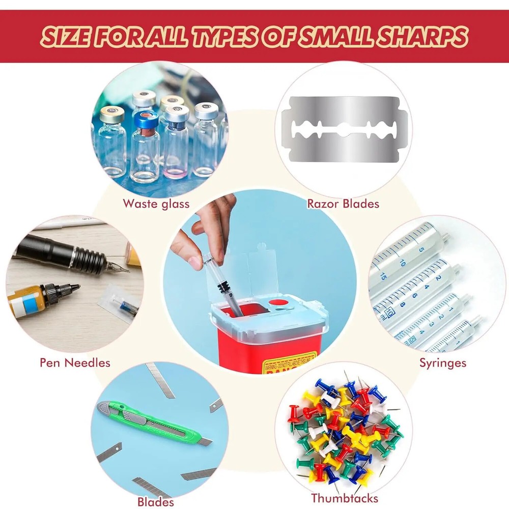 Specification: Material: Plastic Color: Yellow, Red, Black Size: about 105*150mm Capacity: 1L Uses: Can collect tattoo needles, injection needles, disposable needles and other items Description: Suitable for handling sharps containing medicines and their residues. Not suitable for products contaminated by cytotoxins. Can be in your pocket, glove box and much more. For tattoo enthusiasts to create a safe and healthy environment. Package include: 1 X Needle Recycling Bucket Note: Please allow slight dimension difference due to different manual measurement. Please note that slight color difference should be acceptable due to the light and screen.