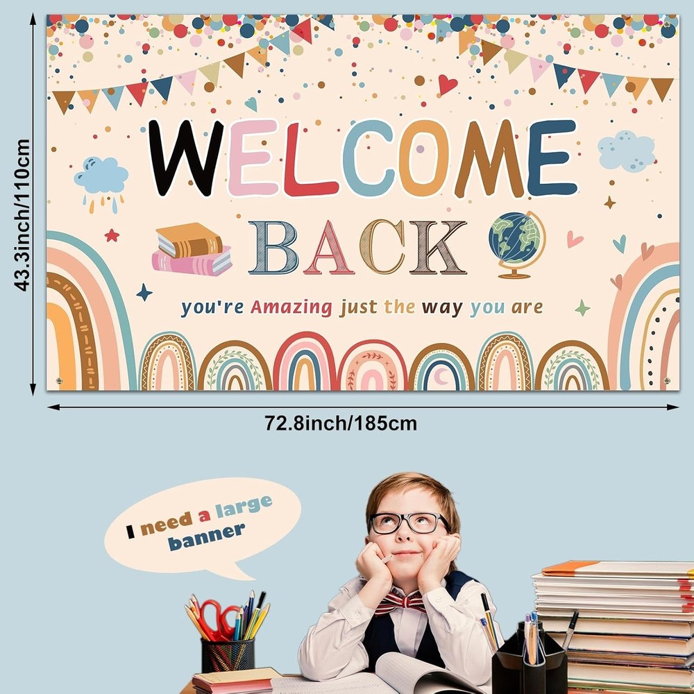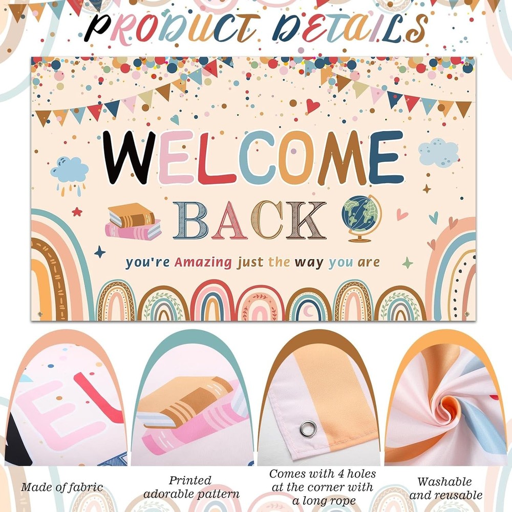 Free eBay listing template designed by dewiso.com Tatuo Welcome Back to School Banner First Day of School Backdrop Banner Large Fabric Welcome Banner Poster Bulletin Board Wall Decoration for Classroom Supplies, 72.8 x 43.3 Inch(Boho) FREE AND FAST SHIPPING! About this item Quantity and dimension: you will receive 1 piece banner for welcome to school in the package, the banner measure approx. 185 x 110 cm/ 72.8 x 43.3 inches, large size can meet your decoration needs, this banner is sure to be eye-catching thing to your school, to welcome your student when they come back school Good craftsmanship: the first day of school backdrop banner is made of polyester oxford fiber, which is soft, light in weight, easy to wash and clean, is not easy to break and fade; After the back-to-school season is over, you can store it and reuse it next year Seasonal school decoration: extra large fabric welcome banner is printed pencils, stars, rulers, books and drawing board, nice choice for boys, girls to display on the first day of school and classroom decoration; Bringing a fun atmosphere to students and teachers Wide range of uses: this poster bulletin board flag is suitable for school decoration, first day of school, school decoration, the poster can be hung on fences, trees, walls, , shelves, as a background for photo booths or tablecloths, and this banner will make your home coming party interesting Easy to install: this photo booth prop wall decoration is designed with 4 holes, you can use the rope or pushpin to pass through the hole and hang anywhere you want, please iron slightly or unfold it before the party if there are creases, and can save your time and energy in organizing your event Product We offer a 30-Day Return Policy on items which you are not completely satisfied with. You have the option for a full-refund or an exchange of the item. No returns are available on items shipped outside of the US . Shipping We offer Free Shipping to the US and ship within 2 business days of payment, usually sooner. We use UPS express shipping. That's why your products are usually delivered within 3 days . Contact We try our very best to make sure every customer is completely satisfied. If there's a problem , message us! We're happy to help. 24/7 live chat available.