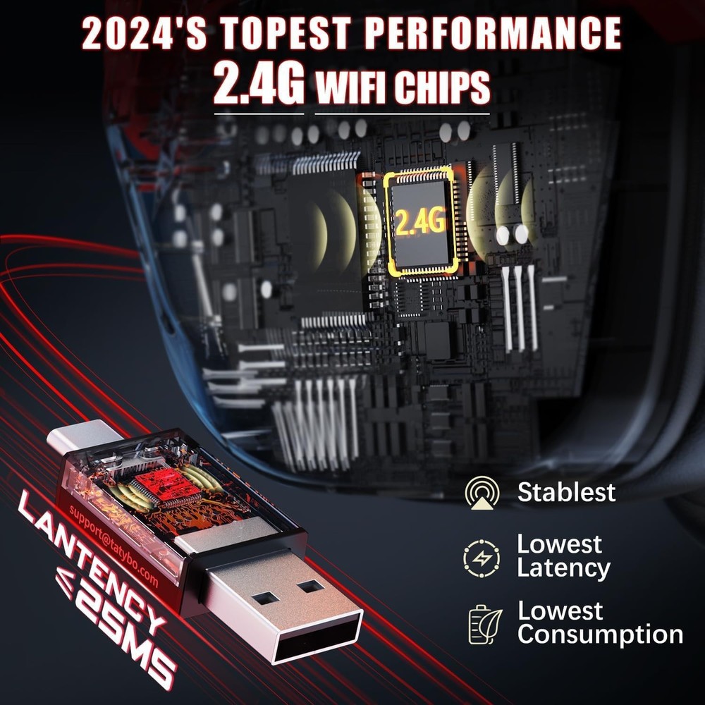 Brand New/Never Opened as packaged by the manufacturer Tatybo WT3 Wireless Gaming Headset 2.4 GHz PC, PS5 and PS4 About this item 7.1 Surround Sound: The large 50 mm audio driver delivers powerful sound depth, revealing more sonic detail with pinpoint accuracy. 7.1 surround sound mode enhances the three-dimensional hierarchy of the environmental sound effects, the game screen and surround sound combined with realistic and natural, to achieve accurate and rapid judgment and attack, not missing every detail of the game, to give you the most immersive gaming experience Detachable 360° Adjustment Noise-canceling Microphone: The microphone adopts detachable design and is equipped with high sensitive noise reduction function, which effectively suppresses ambient noise and ensures pure and clear voice communication and smooth tactical command. The 360° angle adjustment allows you to flexibly adjust the angle and position of the mic 2.4G Hz Wireless & Bluetooth 5.3: Plug-and-play 2.4G wireless connection mode and 5.3 Bluetooth wireless connection mode, the two wireless modes are switched at will, providing you with the most convenient connection mode. Our 2.4G Hz ultra-low latency wireless connection enhances your gaming experience. With a latency of less than 25 milliseconds, operations are smoother and you'll stand out in the competition with no latency for a better gaming experience Ergonomic Design For Long Time Wear: This wireless gaming headset features a foldable design that is not only easy to carry. And to make sure you feel great, the soft memory protein ear cups provide maximum comfort for your ears, and the padded adjustable headband reduces pressure. The 1000 mAh battery capacity allows you to use the headset for up to 40H without turning on the led light, making it a great choice for long distance traveling and long gaming sessions 4 In 1 Connection - Multi-Platform Compatibility: This wireless PS5 headset supports low-latency 2.4G Hz Type-A, Type-C, Bluetooth 5.3 and 3.5 mm wired modes.The unique 2-in-1 USB dongle design makes this gaming headset widely compatible with PS4/PS5/switches/desktop/laptops/mobile phones, adapting to most of the gaming devices on the market today. In addition to wireless connection, a wired cable is also included, allowing you to choose between wired connection and wireless connection freely Note 1: In wireless mode, this headset is not compatible with the XBOX series Note 2: In Bluetooth mode, this headset is not compatible with the Ps5 / Ps4 Items will be shipped within 24 business hours of payment