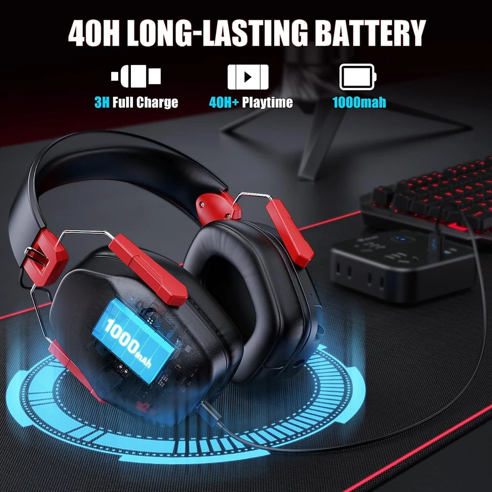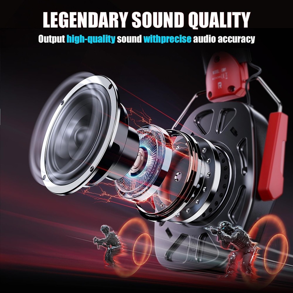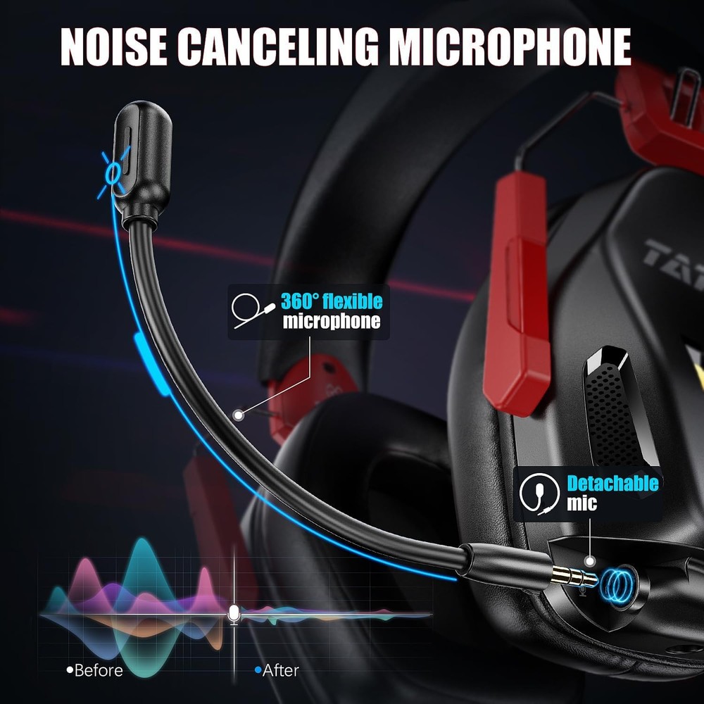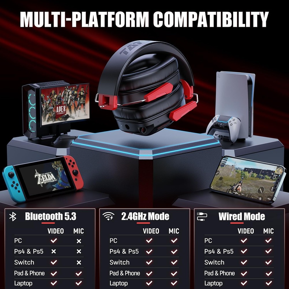 Tatybo WT3 Wireless Gaming Headset with Detachable Mic for PC PS5 PS4 in Black and Red