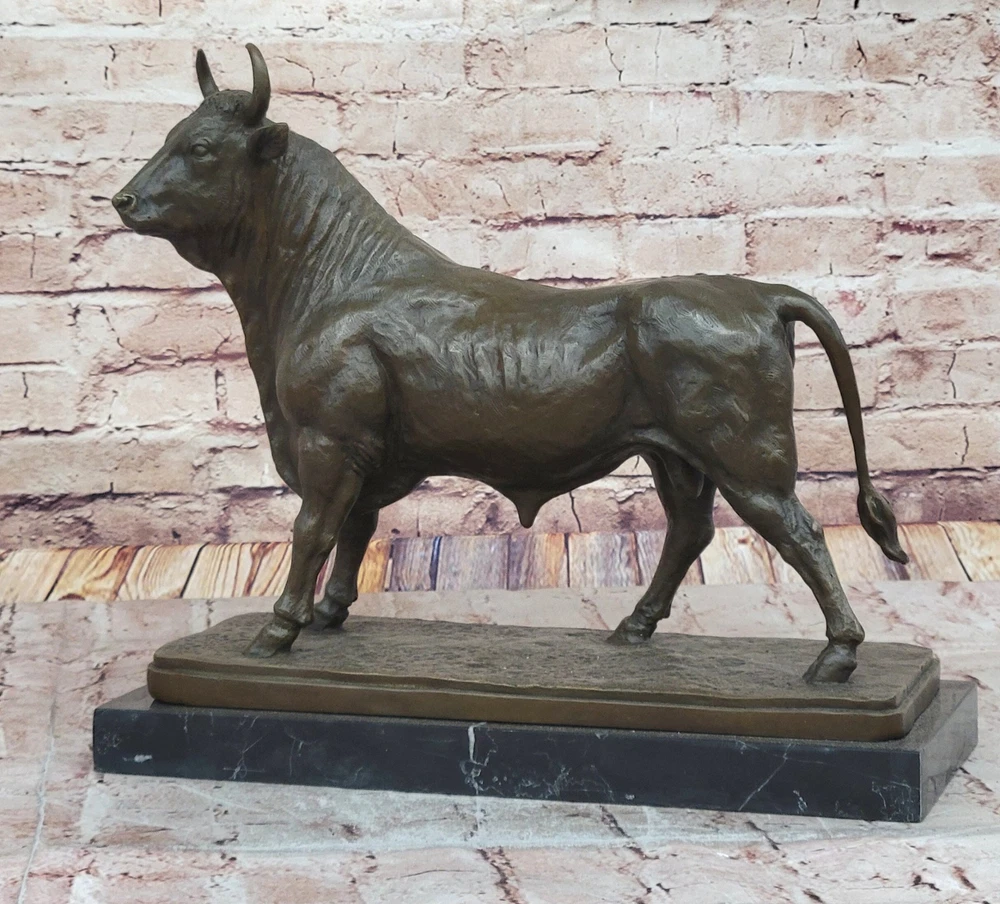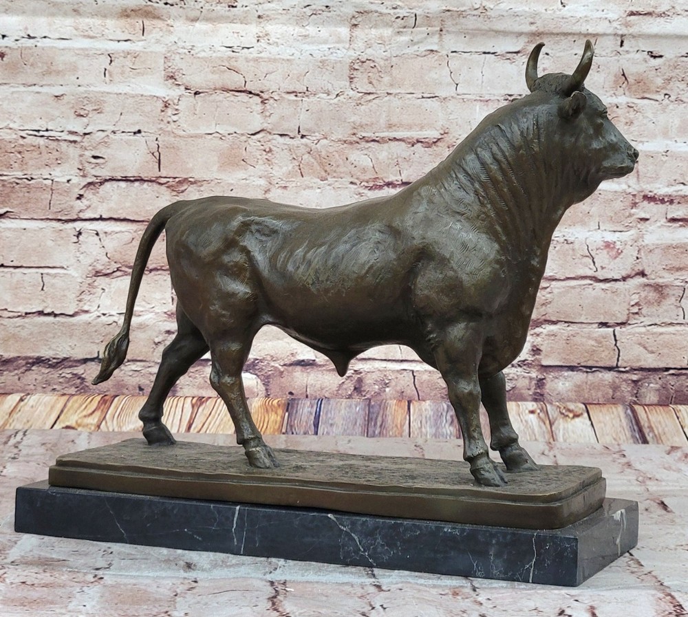 Condition : This sculpture is in a perfect condition. Bronze Dimensions with Marble Base: Height 14" X Width 15.5" Marble size:15.5" X 7" Height without base:13" Weight:30 LBS Inventory:24AL13820542 This bronze sculpture of a bull, Taurus, or buffalo, signed by Bonheur, captures the raw power and resilience of this majestic animal. With its strong, muscular form and determined stance, the sculpture symbolizes strength, endurance, and stabilitymdash;qualities often associated with the Taurus zodiac sign and the revered buffalo in various cultures. The lifelike details in the animal’s stance, facial features, and textured hide showcase the artist’s mastery in bringing motion and energy to bronze. Handcrafted using the traditional Lost Wax Method, this piece ensures exceptional durability and fine detailing. The rich brown patina enhances the sculpture’s depth and texture, highlighting the realistic contours and dynamic presence of the animal. The expert craftsmanship reflects Bonheur’s artistic legacy, inspired by a deep appreciation for nature and wildlife. Mounted on a polished black marble base, this sculpture exudes sophistication and stability, making it an excellent addition to any home, office, or art collection. Whether as a decorative centerpiece or a meaningful gift, this Bonheur-signed bronze animal figurine is a timeless tribute to the strength and spirit of these powerful creatures. Taurus Buffalo Signed by Bonheur - Bronze Animal Sculptures Hot Cast Figure Video will open in a new window Using the eBay App? Paste link into a browser window: [isdntekvideo]