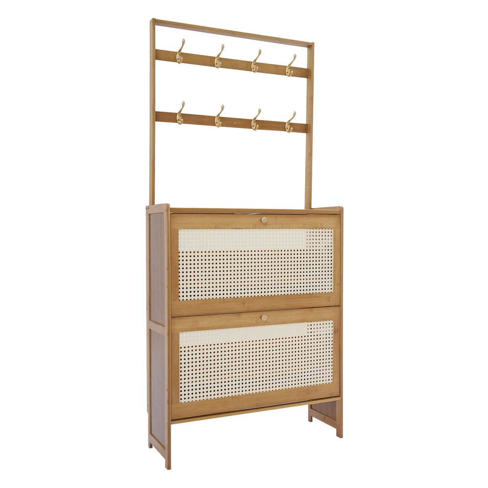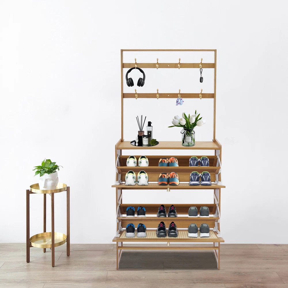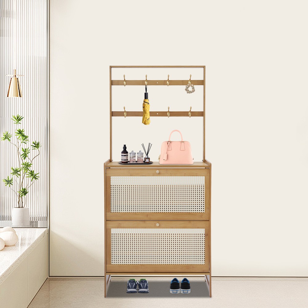 Tawny Flip Door Shoe Cabinet Shoe Cabinet for Entryway Living Room 2 Tiers Description Are you still struggling with shoe storage? Then please take a look at our product. Our shoe cabinet is an efficient organizing solution designed for the home. It combines a rational spatial layout with a practical design, aiming to provide a storage space for your shoes that is both aesthetically pleasing and functional. Whether it's sneakers, casual shoes, or boots, it organizes them all neatly. Key Features Made to Last: High-class bamboo, ABS, and MDF with an exquisite spray painting process make this product sturdy, scratch-resistant , impact-resistant , and not easy to corrode and deform, ensuring a long service life. Large Storage Capacity: The product features a two-tier design with double storage space on each tier for more shoe storage. Whether it's your daily wear or seasonal shoes, they can be arranged in an orderly manner to meet the diverse needs of family members. The bottom area can also store shoes. User-friendly Design: This product adopts a flip door design, making it easy to open and close. It is not only effective in preventing puppies from chewing on your shoes, but it also prevents dust from entering the shoe cabinet. The shaft is sturdy and durable, with a cushioning design to ensure low noise. Thoughtful Design: The 8 hooks allow you to hang headphones, bags, hats, and other items, providing you with additional storage space. Good Ventilation: The mesh ABS breathable cabinet doors enhance air circulation and effectively prevent mold and odors from growing inside. Stable Structure: The product is equipped with an anti-tip fixture that attaches it to the wall, making its structure more stable and preventing it from tipping over. Up to 16.53 lbs load-bearing capacity of the top countertop allows you to place potted plants, small speakers, bags, and other items, providing you with extra storage space. High Adaptability: The divider in the middle of each tier can be removed, thus allowing you to place shoes of different heights. Space Saving: The vertically slim structure allows you to place it behind the door or in a corner, saving space. Enjoying Tidiness: It cleverly integrates shoe storage into life, placing it at the doorway to store your messy shoes, making it pleasing to the eyes as soon as you open the door, bringing you an organized lifestyle. Details Practical Handles : The handles on the cabinet doors make it easy for you to open and close the doors and get your shoes. Reserve Skirting : This design allows the cabinet to be placed close to the wall, thus saving space. Raised Cabinet Feet: The 5.9-inch raised cabinet feet are designed to make it easy for you to change shoes, and it is convenient for you to clean the floor. Application It is suitable for living rooms, entrances, terraces, or bedrooms, and can be used to store slippers, casual shoes, high heels, leather shoes, boots, and other shoes, as well as some daily necessities such as keys, bags, scarves, alarms, etc. How to Fix without Punching Tear off the protective film of the traceless sticker. Stick a large traceless sticker on the surface that fits the wall, and a small traceless sticker on the surface that fits the cabinet. Fix the fixture onto the shoe cabinet. Press the shoe cabinet onto the wall and secure it. How to Fix by Drilling Holes The shoe cabinet holes are aligned with the wall and marked with holes. Drill holes at the marked positions. Screw in the screws to secure the shoe cabinet to the wall. Specification Material: Bamboo, ABS, MDF Color: Tawny Process: Spray Painting Style: Modern Assembly Required: Yes Mounting Type: Free Standing Number of Tiers: 2 Overall Product Size: 70*24*152cm/27.5*9.4*59.84in Cabinet Height: 87cm/34.25in Hanging Rack Height: 67cm/26.38in Tier Spacing: 34cm/13.4in Feet Height: 15cm/5.9in Countertop Load Capacity: About 7.5kg/16.53lbs Package Size: 93.5*34.5*10.5cm/36.81*13.58*4.13in Gross Weight: 8.4kg/18.52lbs Net Weight: 7.98kg/ 17.59lbs Package Included 1* Shoe Cabinet Other Accessories for Assembly Notes Please avoid soaking in water or in a humid environment for a long time. Please do not let children climb to avoid accidents. The traceless sticker is suitable for flat and smooth ceramic tile surfaces, wooden walls, smooth walls, and walls that do not shed dust or peel. Please note that the quantity of shoes stored depends on the style and size of the shoes. Please clean regularly and wipe with a soft damp cloth (not included). Please note that shoes, flower pots, and other items are not included. Please allow the slight color difference caused by the shooting light and 1-3cm error due to manual measurement, and make sure you do not mind before ordering. Payment Delivery details Terms of sales About us Contact us Payment We accept ebay payment 。 Fees such as import duties, taxes are not included in the item price or shipping costs. These charges are the buyer's responsibility. Delivery details Shipping: 2-9 working days to: USA Terms of sales We maintain high standards of excellence and strive for hundred percent customer satisfaction. Feedback is very important to us. We hope that you contact us immediately before you give neutral or negative feedback, so that we can address your concerns. It is impossible to address issues if we do not know about them! About us Your satis faction is our ultimate goal. We work hard to earn your trust and future business. Our certified technicians have tested each item before shipping. The unit comes with 1 year limited warranty on all manufacturing defects. a) If you receive a defective item, you may return it or ask for a discount. Please contact us within 14 days after you receive the package. b) What you returned must be intact and in its original packaging as re? u. Customer is responsible for shipping costs of the returned item. c) We will cover the cost of shipping back t with the shipping rate indicated in the registratio