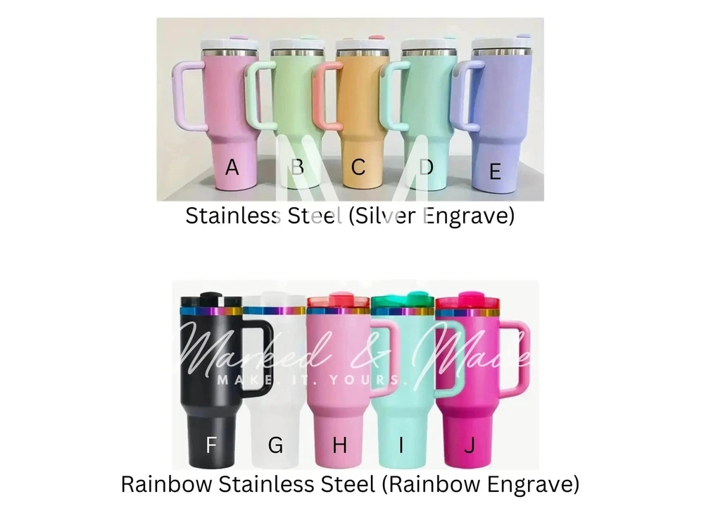 Calling all SWIFTIES! Show off your Taylor Swift pride with our custom engraved Taylor Swift Eras Tour Quencher Tumbler. Available in 30 oz Stanley Dupe, 40 oz Stanley Dupe, and Genuine Stanley Branded variations featuring a Taylor Swift theme. Unlike decals, our designs are laser etched onto the stainless steel and will last for the lifetime of the cup. Add a stainless steel or rainbow metal straw to your order for a complete set. Our Taylor Swift Eras tumbler features a design with a Swiftie theme. Want to personalize it with your name or add a quote, or something else? Let us know in the personalization field. Made with high-quality, stainless steel and double insulated, our tumblers are built to last. Some colors are coated to add a unique engraving effect. These fit all Stanley accessories, including lids, toppers, sleeves, and more. They are full dupes of the Stanley Quencher H2.0 Tumbler, down to the matching lids, handles, and color inlays on the tops and handles as well. No sweating, keep your drinks cold for hours. If your desired color is not pictured, check out our other listings or our TikTok for videos of all available colors and design ideas. Upgrade your tumbler game with our high-quality, custom engraved Quencher Tumbler Available in 30 oz Stanley Dupe, 40 oz Stanley Dupe, and Genuine Stanley Branded variations . Order yours today and get ready to impress! Looking for a custom Stanley Tumbler? Select it in the dropdown! Looking for smaller 30oz options? Select it in the dropdown! We also take custom design requests, perfect for business logos, promotional items, gifts, and more. Some Product Photos may show varying tumbler styles (30 oz, dupe, 40 oz dupe, and Stanley-branded variations). Please select the tumbler type from the drop-down menu that you wish to purchase! We offer non-branded and genuine Stanley-branded options. The cup you will receive will be the color you select in the drop-down menu, with the design pictured in the listing. The design may be modified using the personalization field, and it may also be modified to accommodate the size of your cup. Colors vary by monitor, we try to make sure our colors are as close as possible to real life, but slight differences in display color vs actual color may occur. Taylor Swift Tumbler Taylor Swift Stanley Eras Tour Tumbler. Eras Tour Stanley. Taylor Swift Eras tumbler Taylor Swift Eras stanley