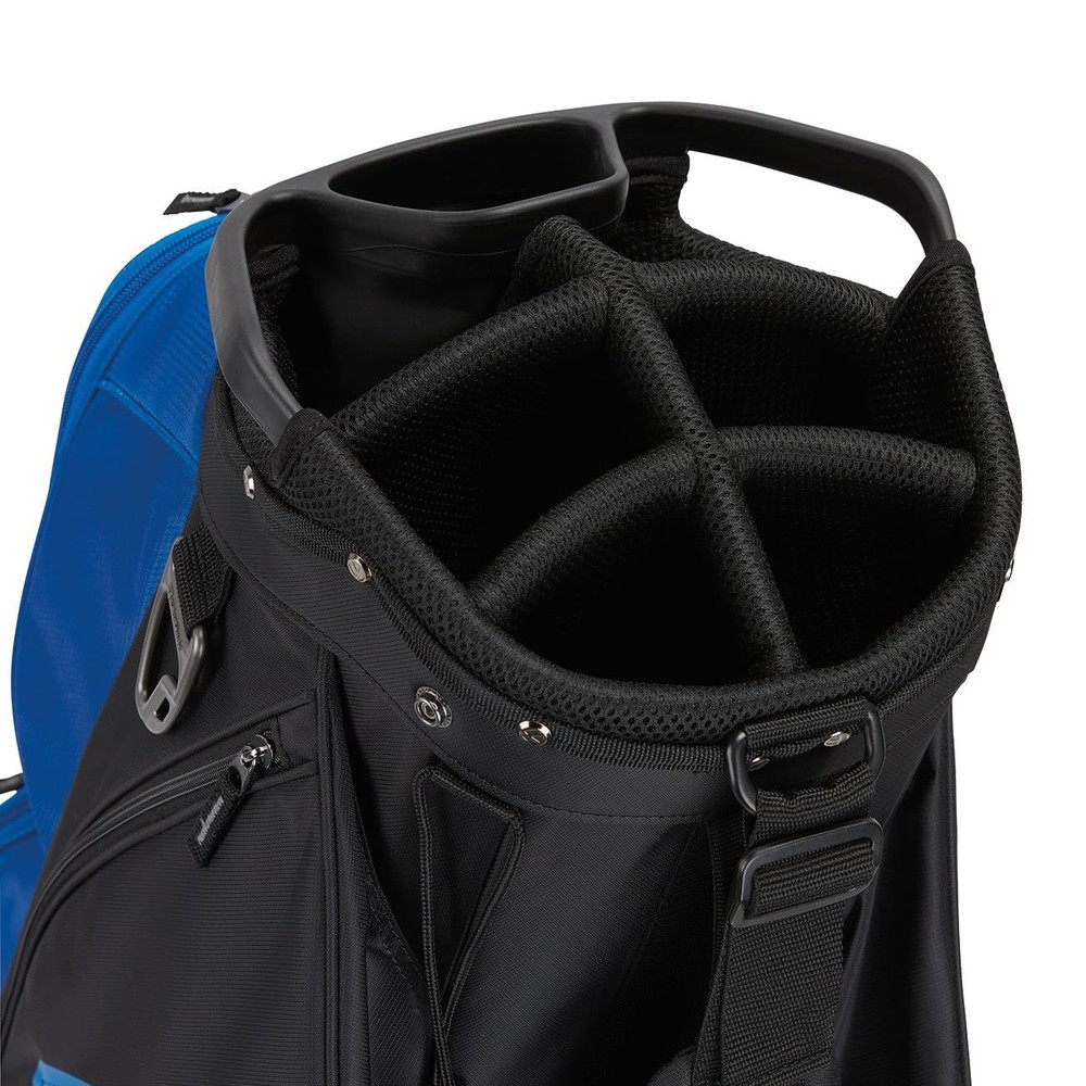 Additional front facing pockets for easier access and more storage New fade resistant yarn dyed fabric holds color longer with UV protected materials Built in putter protecting polymer patch; magnetic stash pocket Split side apparel pocket for more separation of storage in the Golf Bag
