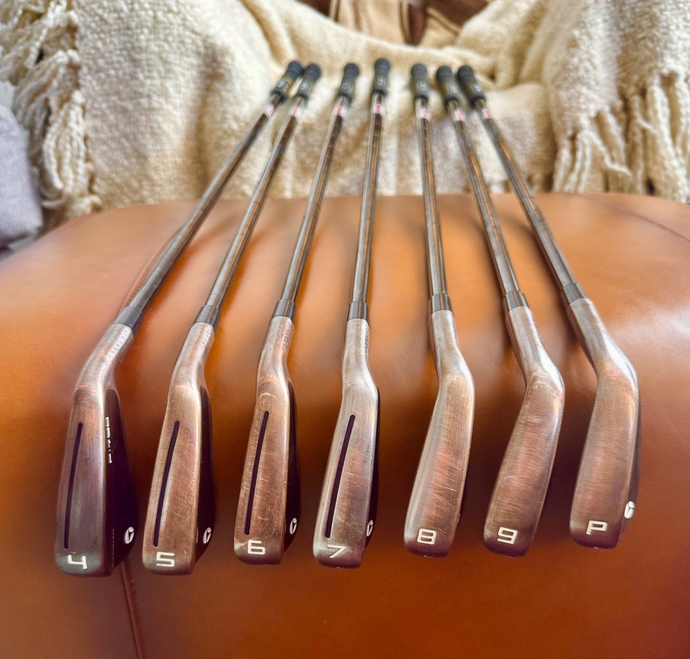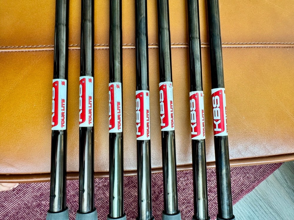 Signs of normal play wear. Played for one season. +.05 inch in shaft length. KBS Tour Lite shafts. The TaylorMade 2024 P790 Copper 4-PW KBS Stiff + 0.5 in. is a high-quality iron set. Featuring a stiff steel shaft and a mid-high launch, these clubs offer excellent control and distance on the golf course. With a sleek black lie angle color and a mid spin, these TaylorMade P790s are constructed with precision and attention to detail, making them a reliable choice for golfers seeking precision and performance in their game.