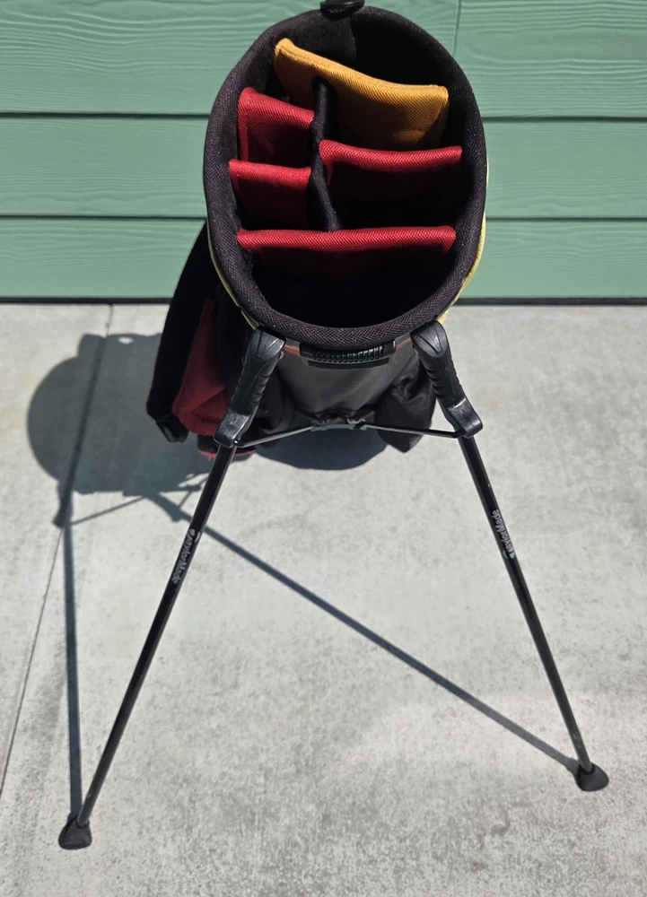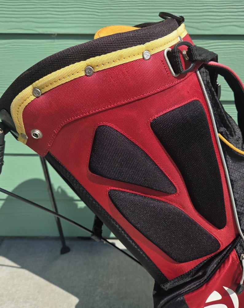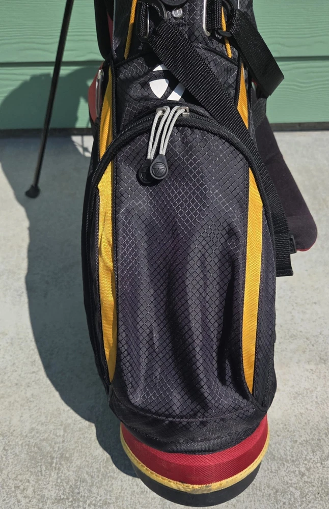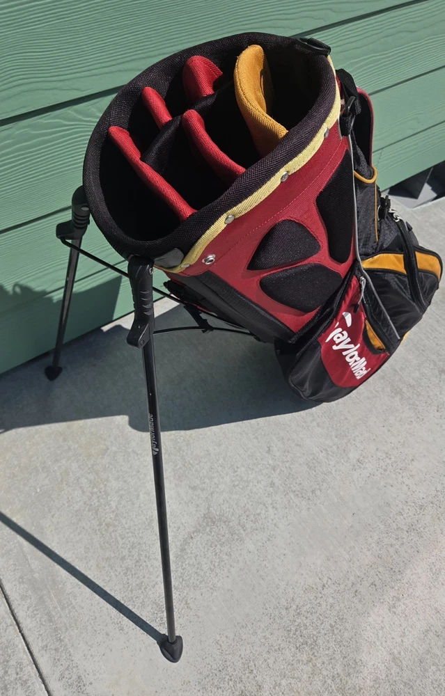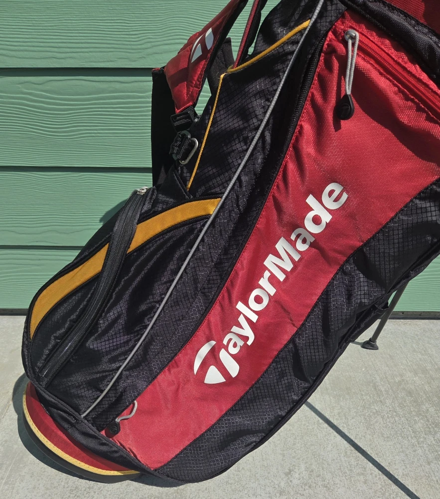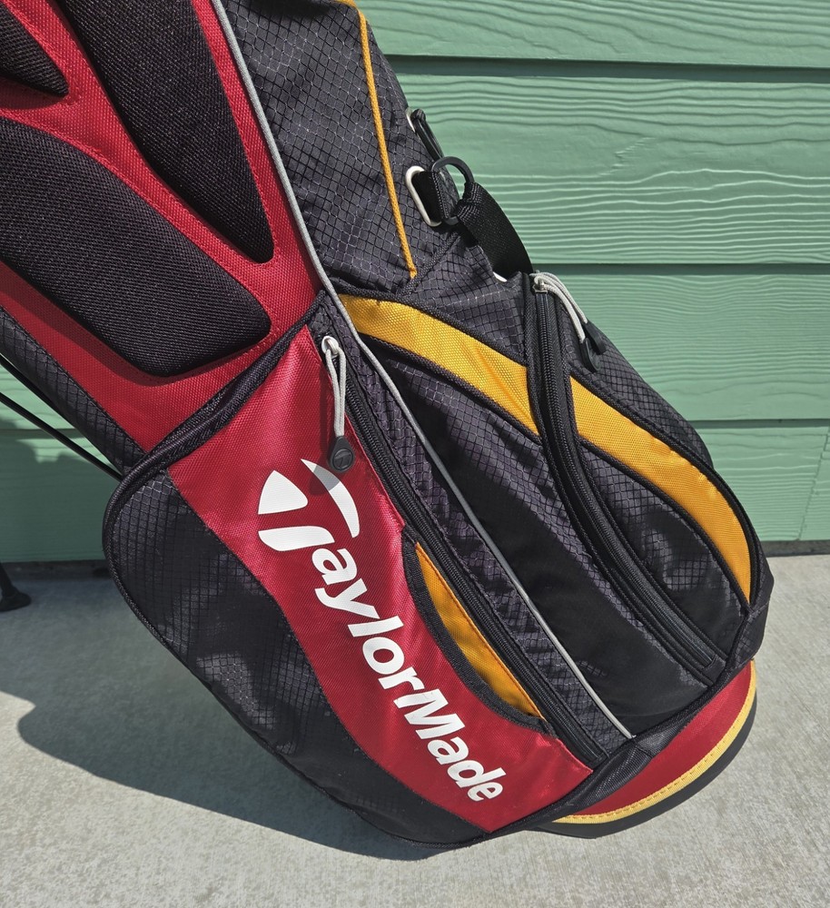 This TaylorMade golf bag is in great used shape with minor wear. Very slight fading on the handle. All zippers function properly. Stand/legs function properly as well. No holes or rips in this bag. Please feel free to reach out with any questions. Thank you.