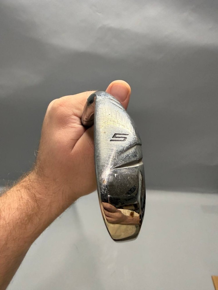 B-The TaylorMade RBZ RocketBallz 5 Iron is a premium golf club designed for right-handed players with a regular flex steel shaft. Made in the United States, this iron features a standard lie angle for optimal performance on the golf course. With the renowned TaylorMade brand behind it, this 5-iron is sure to enhance your game with its quality craftsmanship and innovative design. Upgrade your golf game with this top-of-the-line TaylorMade RBZ RocketBallz 5 Iron.B