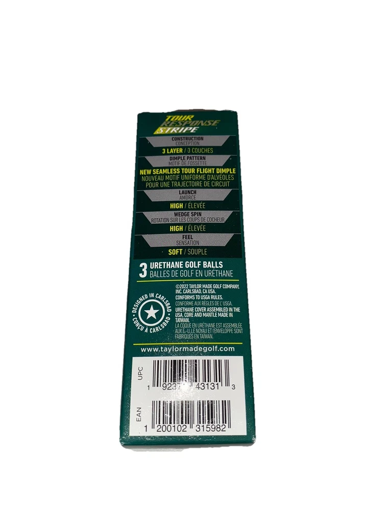 MPN:NOT SPECIFIEDVintage:NoType:Golf BallsColor:MulticolorUPC:0192371431313gtin13:0192371431313Product Line:TaylorMade Tour ResponseBrand:TaylorMadeSigned:NoModel:StripeManufacturer Color:Lime/WhiteFeatures:Control, Short game, DistanceBall Type:Tour PreferredNumber in Pack:3Sport/Activity:GolfCompression Rating:HighNumber of Items in Set:3Suitable For:MatchBall Construction:3-pieceMaterial:Polyurethane