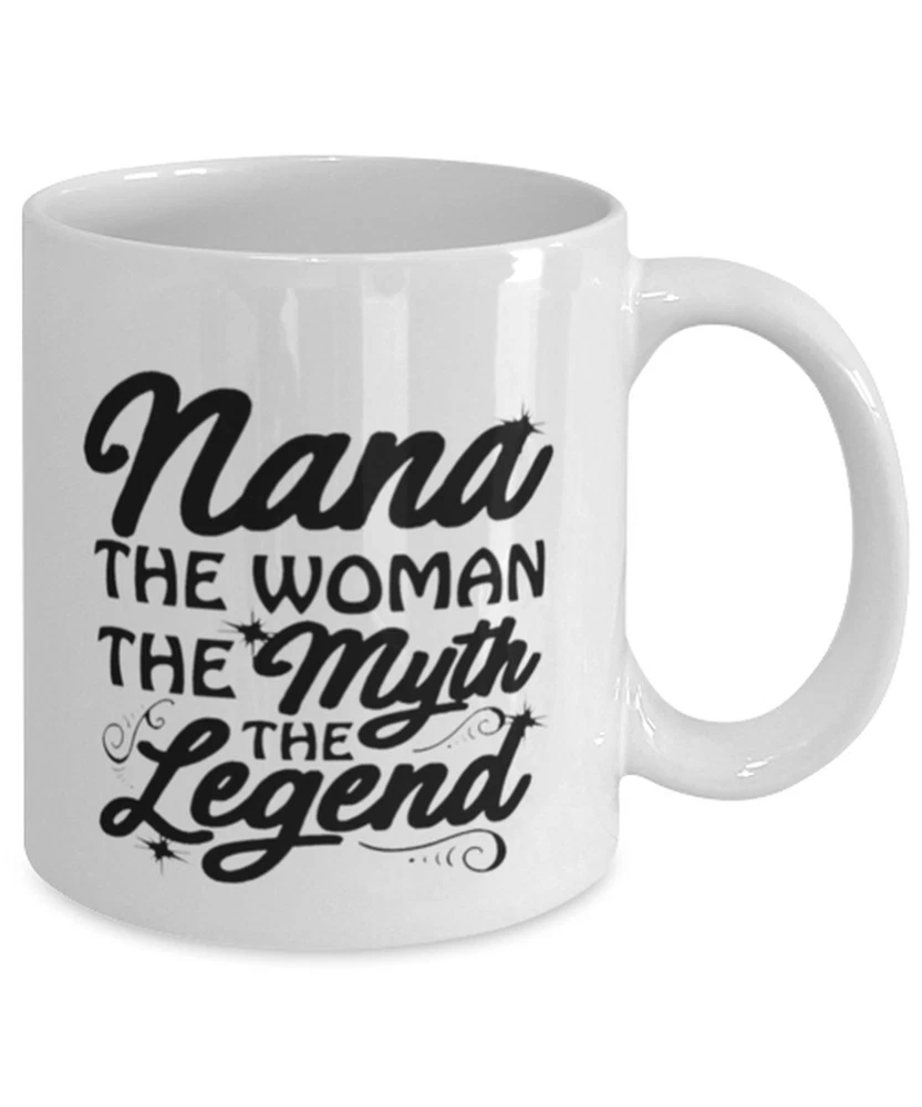 Grandmother Funny Coffee Mug Nana The Woman The Myth The Legend Grandma Mug Product Details.. This high quality 11oz. ceramic white mug has a premium hard coat that provides crisp and vibrant color reproduction sure to last for years. Perfect for all hot & cold beverages. The highest quality printing possible is used. It will never fade no matter how many times you wash it. Material: 100% Ceramic. Print both sides. Dishwasher and Microwave Safe. High Gloss + Premium White Finish. Printed in the U.S.A. Personalized & Custom. We support personalized and custom mug to add custom, when placing an order, you can add notes to the "order note" in shipping address section. Also you can contact us directly via message. Shipping Info. Ready to ship in 1 to 2 business days, All products are made-to-order and proudly printed in the United States. Shipped by USPS and DHL, You will receive your order in 5-7 days. Replace & Refund. All products are defective during shipping broken, chipped will be replaced free of charge. You are not satisfied with the product, we will refund 100% money to you. If any other issues arise, please do not hesitate to message, we would be more than happy to assist you.
