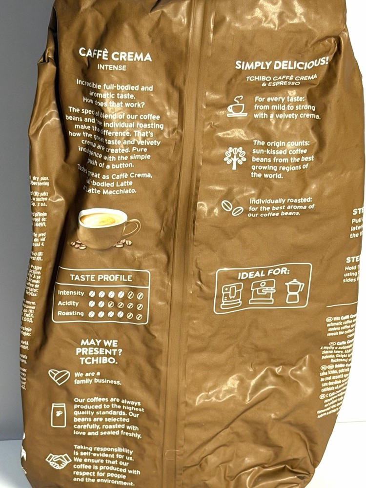 ***The appearance of this bag is due to the fact that it is extremely well vacuum packed. I’ve never seen any product this well done. This is not an easy to acquire bag of coffee to get in the United States.*** The Tchibo Caffe Crema Intense Coffee Beans are a high-quality product with a medium roast, perfect for coffee lovers who appreciate a smooth and creamy flavor. Packed in a 1 kg bag, these coffee beans are vacuum-sealed to ensure freshness and have an expiration date of 08/2026. Imported from Poland, these coffee beans offer a rich and intense Caffe Crema flavor that is sure to satisfy your caffeine cravings. Ideal for brewing at home, this product is a pantry staple for coffee enthusiasts looking for a premium and flavorful option.