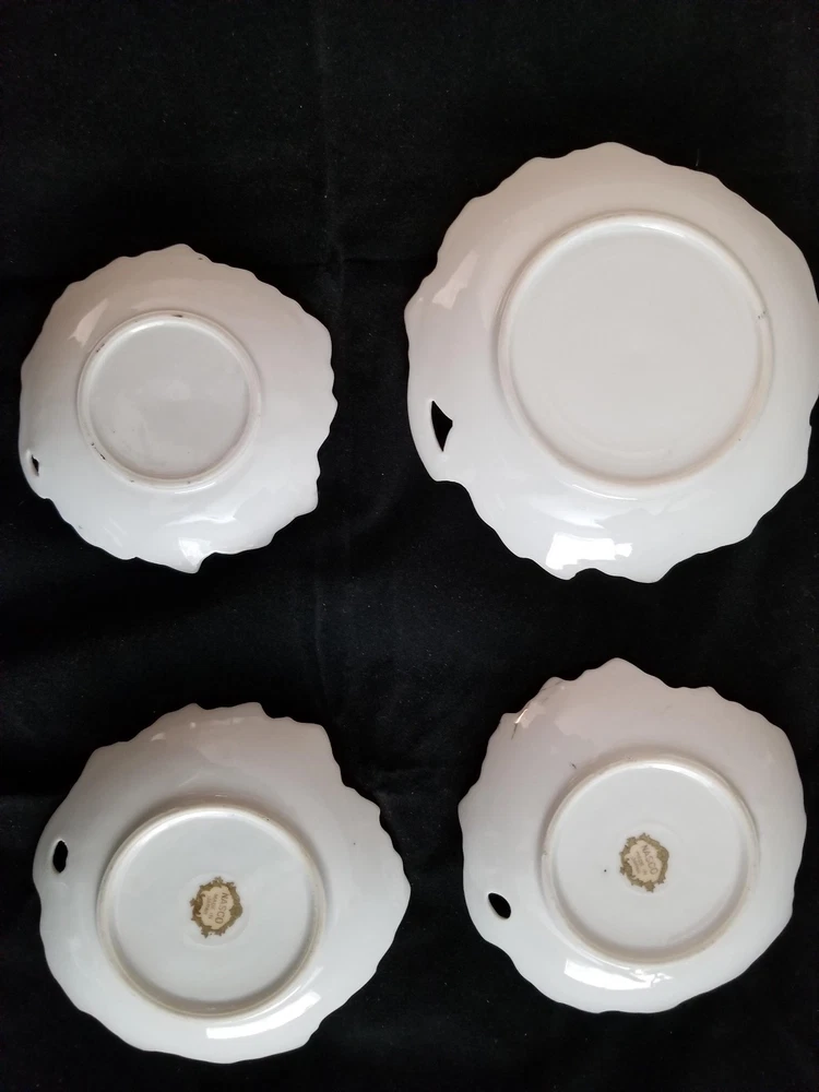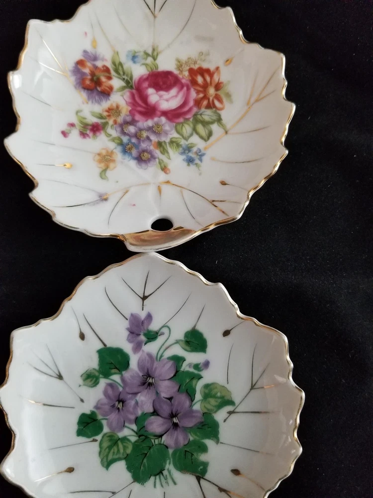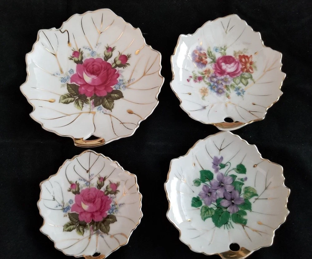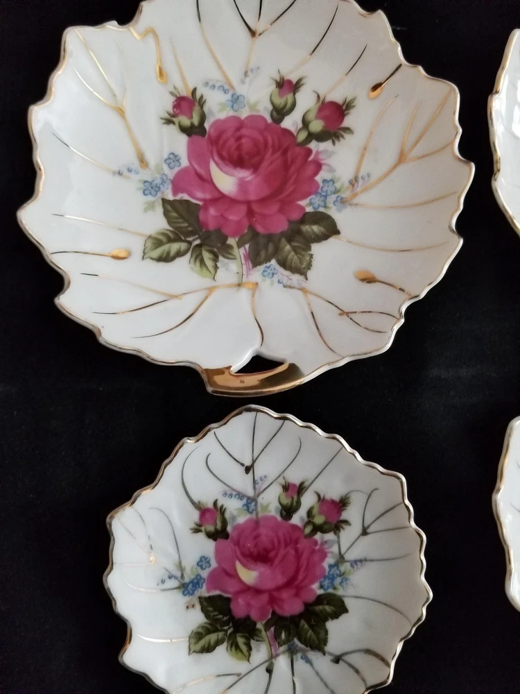 Nasco Japan Maple Leaf Tea Bag Plate Set Quantity of 4 3 graduated Sizes Floral Design Sizes are approximate Small = 4" Long Medium = 4 3/4" Long Large = 5 1/2" Long See pictures for a better visual description Thank you for looking & be sure to visit my store at Serendipity At 626Adrianne often for more Serendipitous Discoveries