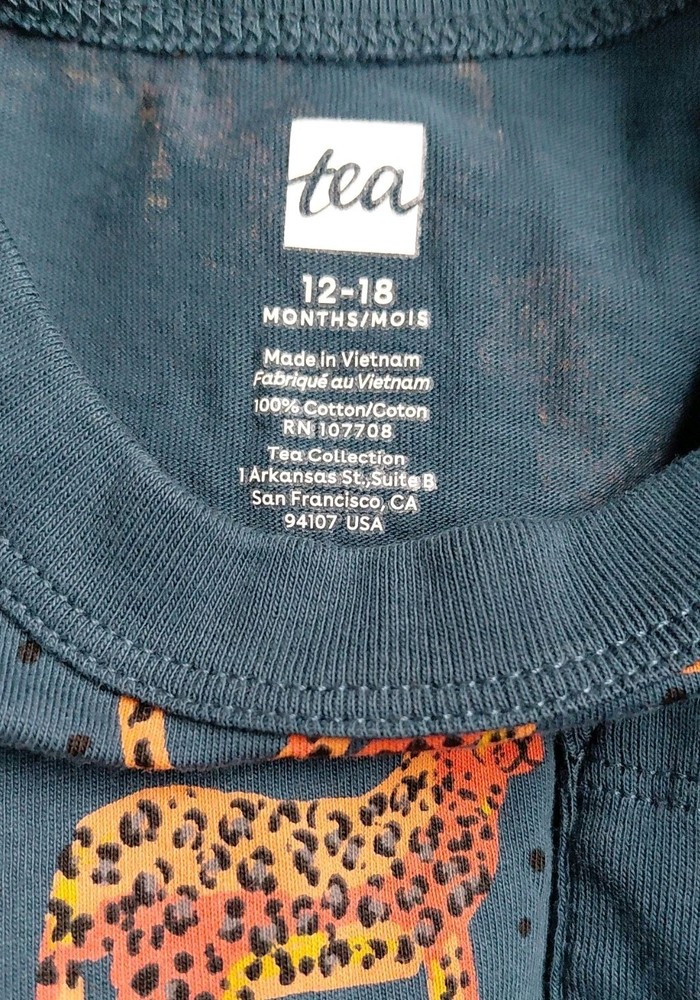 The Tea Collection 12-18 Months Romper Pocket *Lot of 2* is a stylish one-piece outfit perfect for baby boys. Made from 100% cotton, this multicolor romper features a round neck, long sleeves, and snap closures for easy dressing. With a fun nature, dinosaur, jungle, and outdoor theme, this romper is great for casual occasions during all seasons. The romper also includes convenient pockets and is machine washable for easy care. Perfect for little boys who love exploring and making new discoveries.
