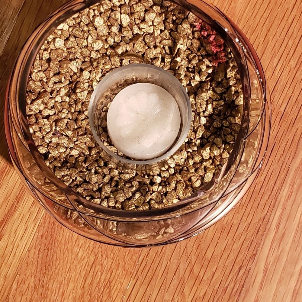 Tea Light Stained Glass Candle Holder with Gold Stones Beautifully Made Never used. Measures approximately 4.5" in diameter Bundle and Save. Quick shipping. Thanks for stopping by. Have a great day. #Wedding, #love, #Christmas, #Holiday, #Romance, #party, #gift, #Birthday, #gold, #Vintage