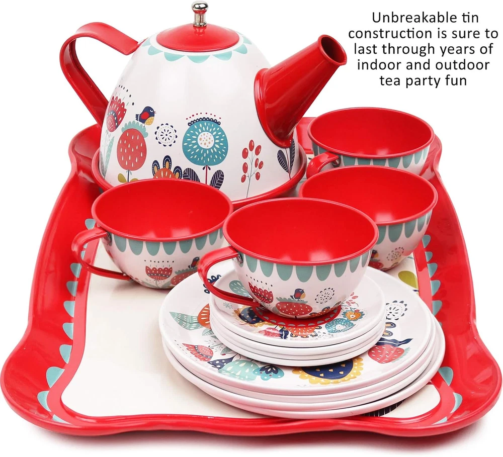 Store New Arrivals Add to Favorite View Feedback Contact Tea Set for Little Girls, Pretend Play Tea Party Set, Floral Design Kids Tin Tea Set with Carrying Case (15 Pcs) Description Age Range Description Kid Style Floral Educational Objective Hand eye coordination and fine motor skills Material Tin Theme Floral Included Components Teapot, Cups, Saucers, Plates, Serving Tray, Carrying Case TEA PARTY TIME - This adorable Kids Tea Set is certain to be your little princess favorite gift! Designed for pretend play & is a fun way to boost imagination! Let them host an outdoor Magical Garden Tea Party! EASY STORAGE - Safely store & organize - All tea set pieces with a matching carrying case. Our case is strong enough to carry around the tea set indoors and outdoors INCLUDES IT ALL - Fifteen (15) pieces: 1 teapot with lid, 4 cups, 4 saucers, 4 plates, serving tray and carrying case PRODUCT DIMENSIONS - Teapot - 4.5" L (including handle and spout) x 3" H. Cups - 2" L x 1" H. saucers - 2.3" D. Plates - 3.5" D. Tray - 9.5 L x 6" W. Storage case measures 11.5" L x 8" W x 4" H FLOWER DESIGN - This tea set for toddlers is decorated with a lovely floral design. Sure to delight and inspire your little hostess Product Description The Kiddie Play Tin Tea Set is a great gift for little girls and boys as an addition to their kitchen playset collection. Teapot 4.5" L x 3" H Plate (4 piece) 3.5" Diameter Serving Tray 9.5 L x 6" W Cup & Saucer (4 set) Cups - 2" L x 1" H. saucers - 2.3" Diameter Made of durable tin material - safe to use with real food and easy to clean. ABOUT US We offer the best prices around on high quality products. Our E-store includes media such as books, movies, music and games while offering electronics, toys, sporting apparel, clothing, tools, general home, garden items and more. SHIPPING We are always working hard to ensure your package arrives as soon as possible. Please understand that some factors like weather, high postal traffic, and the performance of shipping companies are outside of our control. We offer free shipping to the lower 48 states and ship within 2 business days of payment, usually sooner. We do not accept P.O. Boxes. Please provide a physical address. For shipping outside of the continental USA, we only use eBay's Global Shipping Program.The item is shipped to KY and then sent to the rest of the world. International customers are responsible for all duties and taxes. Continue to check out in order to calculate costs for shipping the item to your country. Messages regarding eBay's Global Shipping Program MUST be directed at eBay EXCLUSIVELY. RETURNS We offer a 30-Day Return Policy on items which you are not completely satisfied with. You have the option for a full-refund or an exchange of the item. No returns are available on items shipped outside of the USA. PAYMENT We accept PayPal. CONTACT US This page content is yet to come Please ad us to your favorite seller and visit again later Thank You CUSTOMER SATISFACTION We try our very best to make sure every customer is completely satisfied. If there's a problem, message us! We're happy to help. WE ACCEPT Copyright © 2021 AutoDS. | All Rights Reserved