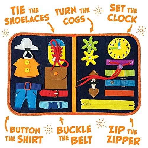 Teach My Busy Board, Montessori Toys, Gifts for 3 4 5 Year Old Girls and Boys, Sensory Toys for Preschoolers, Preschool Educational Toys, Travel Activities, Learning Toy, Fine Motor Skills The Teach My Busy Board is orange, safe, durable, a perfect gift for preschoolers and will help preschoolers master the basic skills. MONTESSORI TOYS FOR PRESCHOOLERS: Montessori is an educational method that is based on self-directed activity, hands-on learning and collaborative play. Our busy board is a perfect Montessori toy for toddlers. Montessori busy boards can teach your child how to dress, strengthen hand-eye coordination, and develop problem-solving skills through playing. DURABLE AND SAFE: Sensory toy made of high quality felted wool, soft with no hard corners. Components are tightly nailed to the board so the components cannot be torn off. LIGHTWEIGHT AND PORTABLE: The busy board measures 11×8.4 in and weighs less than 1lb. The lightweight handbag design of this busy board allows kids to easily carry it and use it in cars or on the airplane. Portable so it is the perfect travel toy. PERFECT GIFT FOR PRESCHOOLERS: The busy board is a sensory toy to help kids learn basic fine motor skills. Perfectly designed as a handbag, making it easy to carry and the perfect gift. The busy board can be a birthday gift for toddler and preschool boys and girls, also a holiday gift. DEVELOP BASIC LIFE SKILLS: The busy board for preschoolers can develop fine motor skills and basic life skills through play. This Montessori toy busy board is a fun and effective learning toy. It can help preschoolers to learn dressing skills. The busy board provides a sensory learning activity which is suitable for a wide range of developmental levels. Shipping from the USA All of our products are shipped from the USA, ensuring quick delivery to your destination. Payment We offer the following payment methods: PayPal, credit card, bank transfer, and eBay's secure payment system. Free Shipping & Free Returns Shipping within the USA is FREE. Additionally, any return is absolutely free for you. Risk-Free Purchase You have the option to return an item within 30 days without any justification. We cover the return shipping costs! Fast Shipping We ship immediately upon receipt of payment. Generally, the package is delivered within 2-3 days in the USA. If it takes longer, we will contact you. Quality and Costs Made in Europe, USA, China No customs fees or additional charges Total satisfaction guarantee Invoice with declared VAT available upon request in .pdf format Feedback Your feedback is very important to us. After you pay for your purchase, you will automatically receive positive feedback from us.
