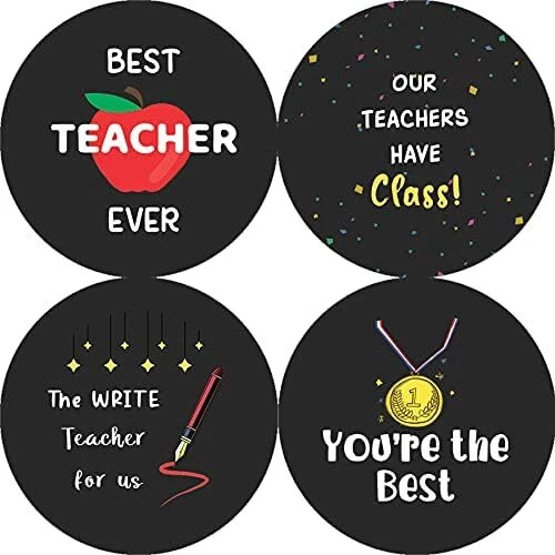 16 UNIQUE DESIGNS INSPIRING STICKERS FOR YOUR DIY PERSONALIZED DECORATIONS - Teacher Appreciation Stickers (10-Sheets x 16 Designs). These colorful and uniquely inspiring round shaped stickers are the best tool for DIY decoration and personalization of your belongings. GREAT STOCKING STUFFERS, TEACHING SUPPLEMENTARY MATERIALS, AND GIVEAWAY - Great stocking stuffers gifts for Home Teachers, Principals, Educators, Students. A perfect design to give during guidance sessions, classroom activities, school giveaways, birthdays, anniversaries, family day, and any other special occasions. MADE WITH DURABLE AND WATERPROOF MATERIALS - There is a lamination or coating to make the stickers high water resistant, and WILL NOT fade from the water. The stickers can stick it anywhere you like, and it sticks there and lasts a long time. A COLORFUL AND DECOR STICKER DECAL - Each sheet with 16 individual round stickers. There are 10 Sheets, with a total of 160 pieces of stickers. STICKER SIZE: 1.5 INCHES IN DIAMETER Teacher Appreciation Stickers (10 Sets X 16 Designs) COLORFUL AND COLLECTION OF TEXT STICKERS • Well designed. • Very encouraging. • Self-adhesive. Teacher Appreciation Stickers (10 Sets X 16 Designs) are super fun to collect; you can't have just one! That's why you will find a selection of stickers right here. Each package comes with different stickers in a variety of designs. Stick them here, stick them there, stick them everywhere! Everyone will love these self-adhesive stickers. These colorful stickers are perfect for any adults and these come with very inspiring messages and bright pictures. A fun, inexpensive way to add a decorative, notes, and stationery. Delight yourself with uplifting messages designs that are very encouraging. Teacher Appreciation Stickers (10 Sets X 16 Designs) perfect for giveaways, behavior incentives, prizes! These stickers are acid-free, nontoxic, and safe for use on photos. This product comes with a 60 days money back guarantee. You can return them to us for a full refund.
