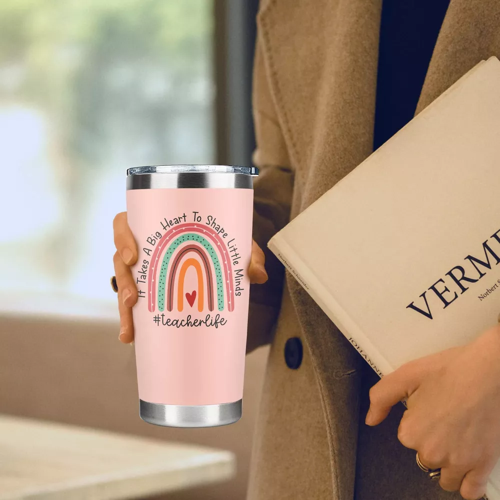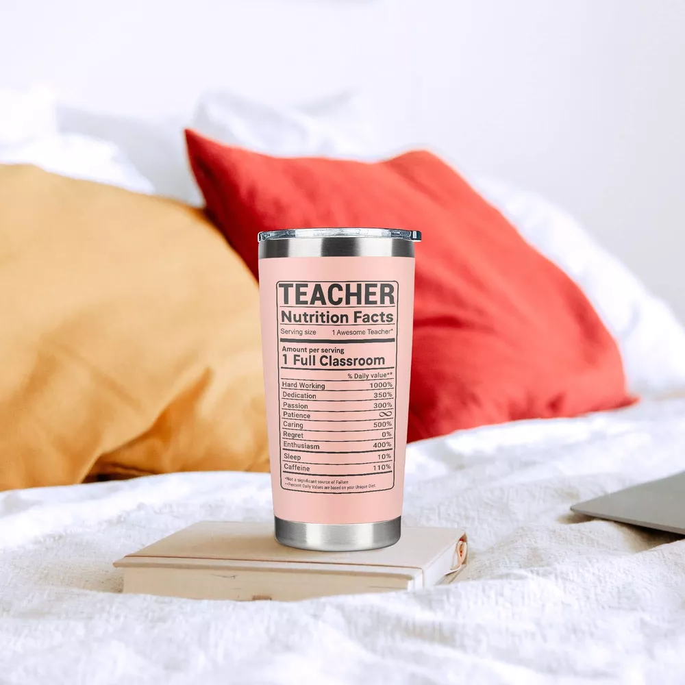 Teacher Tumbler TEACHER APPRECIATION GIFTS FOR WOMEN: If you're looking for a gift to show your appreciation for the hard work and dedication that your Teacher put in every day, our Can Glass is the excellent choice. Suitable for teacher gifts for christmas, christmas presents for teachers, teachers christmas gift ideas, teachers gifts for christmas, christmas gifts for teacher or end of year teacher gifts, teacher retirement gifts for women, teacher birthday gifts for women, ... TEACHER GIFTS FOR WOMEN: She will be delighted, surprised or cried tears of happiness when receiving this lovely can glass. Ideal for cool gifts for teachers, daycare teacher appreciation gifts, daycare teacher gifts, preschool teacher gifts, teacher appreciation gifts for women, new teacher gifts, ... SPILL RESISTANT & DURABLE DESIGN: Come with a clear, push-on lid and crafted with 18/8 food-stainless steel, this Teacher Tumbler is unbreakable, sweatproof, rust-resistant, portable, and perfect for morning coffee or to regularly drink out of. DOUBLE WALL VACUUM INSULATION: Made with double-wall vacuum insulation, this Daycare Teacher Tumbler can keep your favorite beverages hot for 8+ hours and cold for 12+ hours in normal temperature environment. This can hold hot coffee, iced cold fruit teas, wine tumbler,... without affecting your drink’s natural taste. PORTABLE TRAVEL TUMBLER: fit into most cup holders. Our 20 Oz tumbler is used for both outdoor and indoor use like working, exercising, backyard barbecues, picnic, hiking adventure, RV tour, beach outing, fishing trip or in any daily activity.